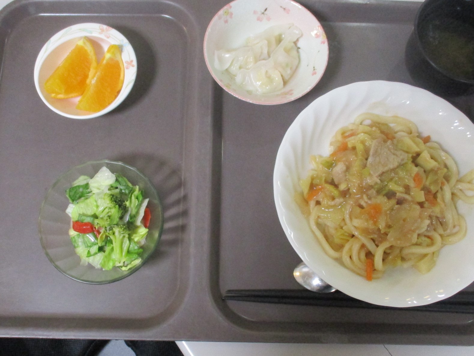 本日は、焼うどんです。野菜たっぷりで栄養がたっぷりですね。