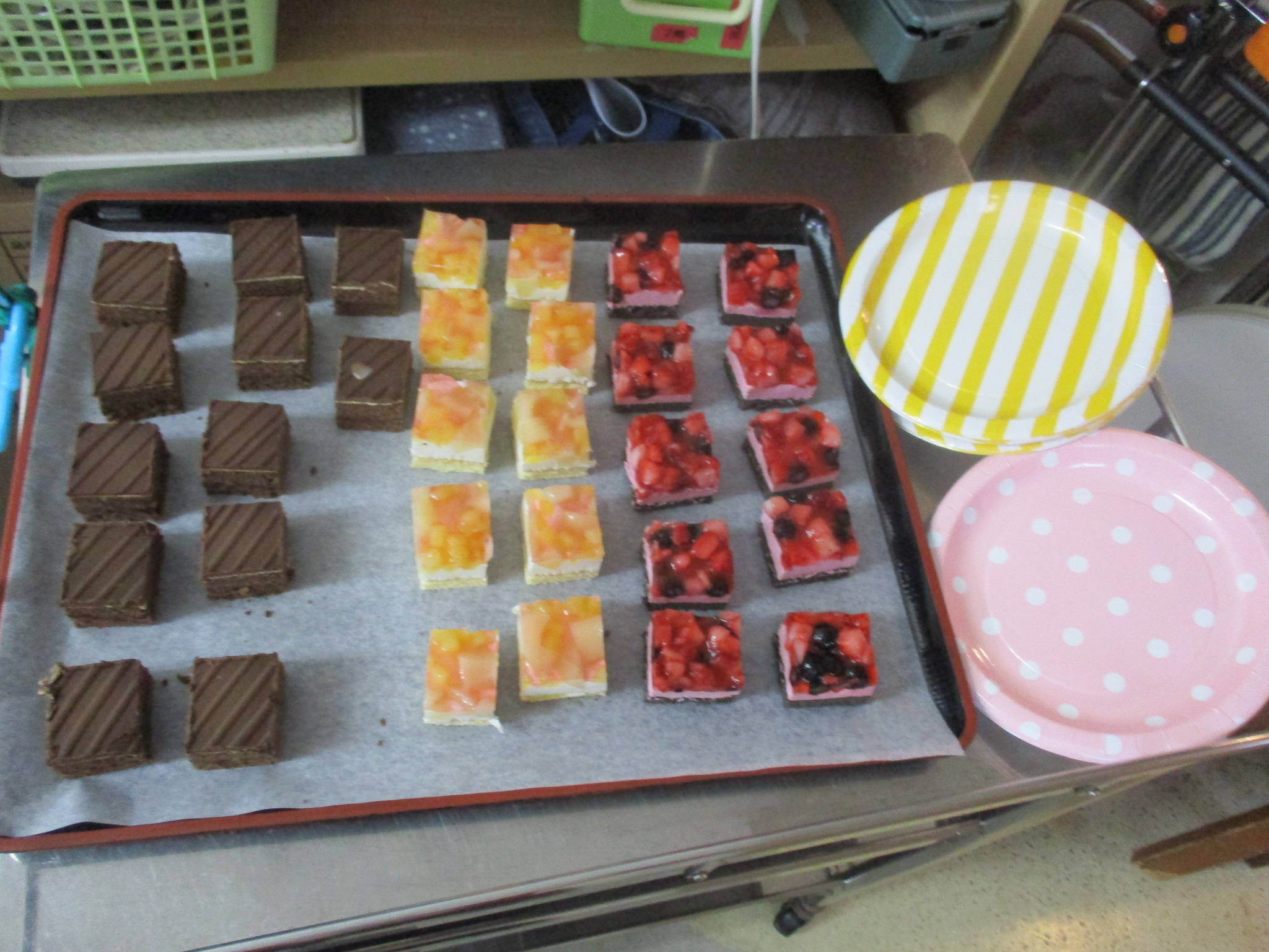 おやつにはケーキバイキングで美味しそうなケーキが出てきました。