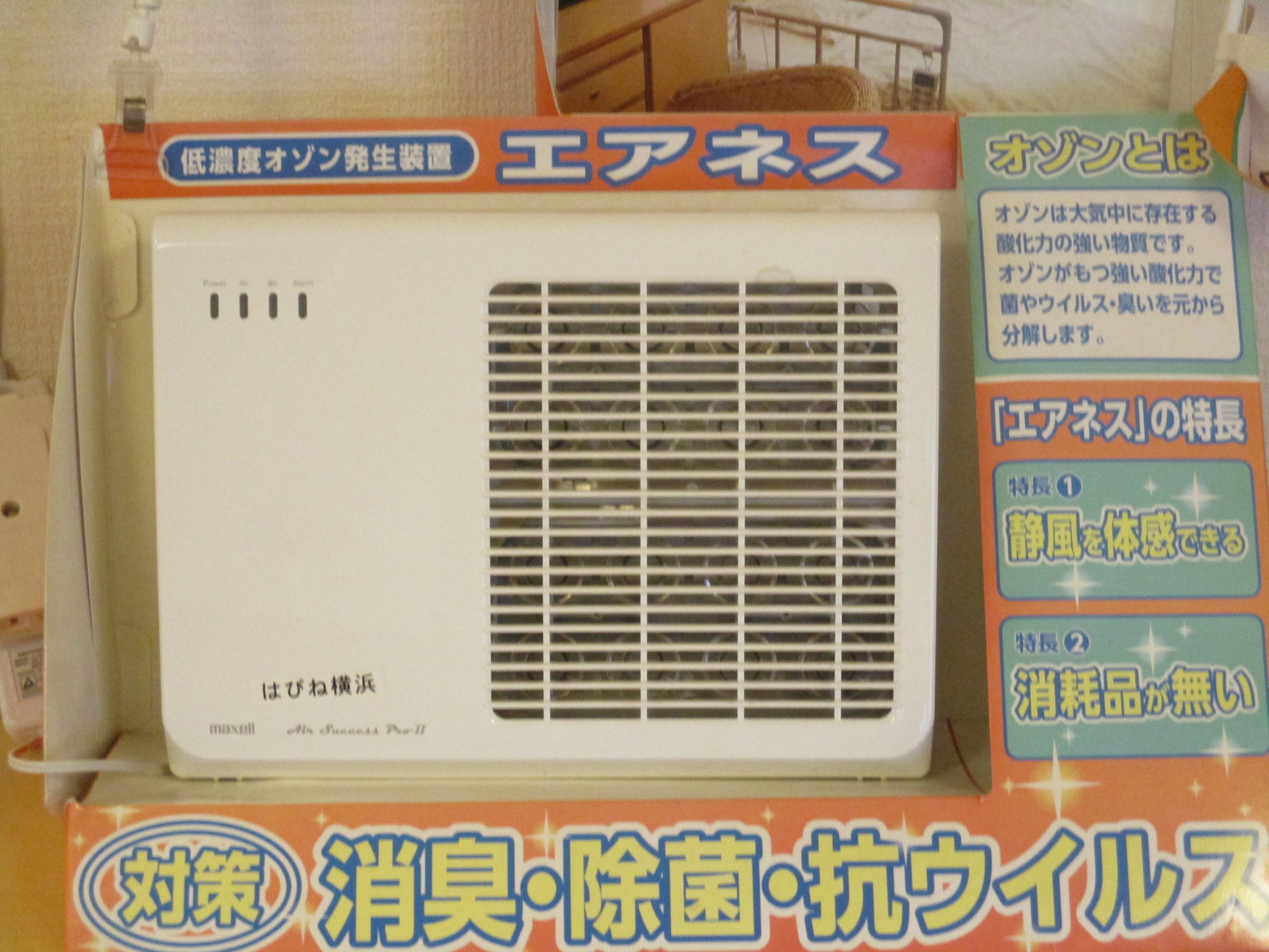はぴね横浜では、低濃度オゾン発生装置”エアネス”を各場所に設置させていただきます。
