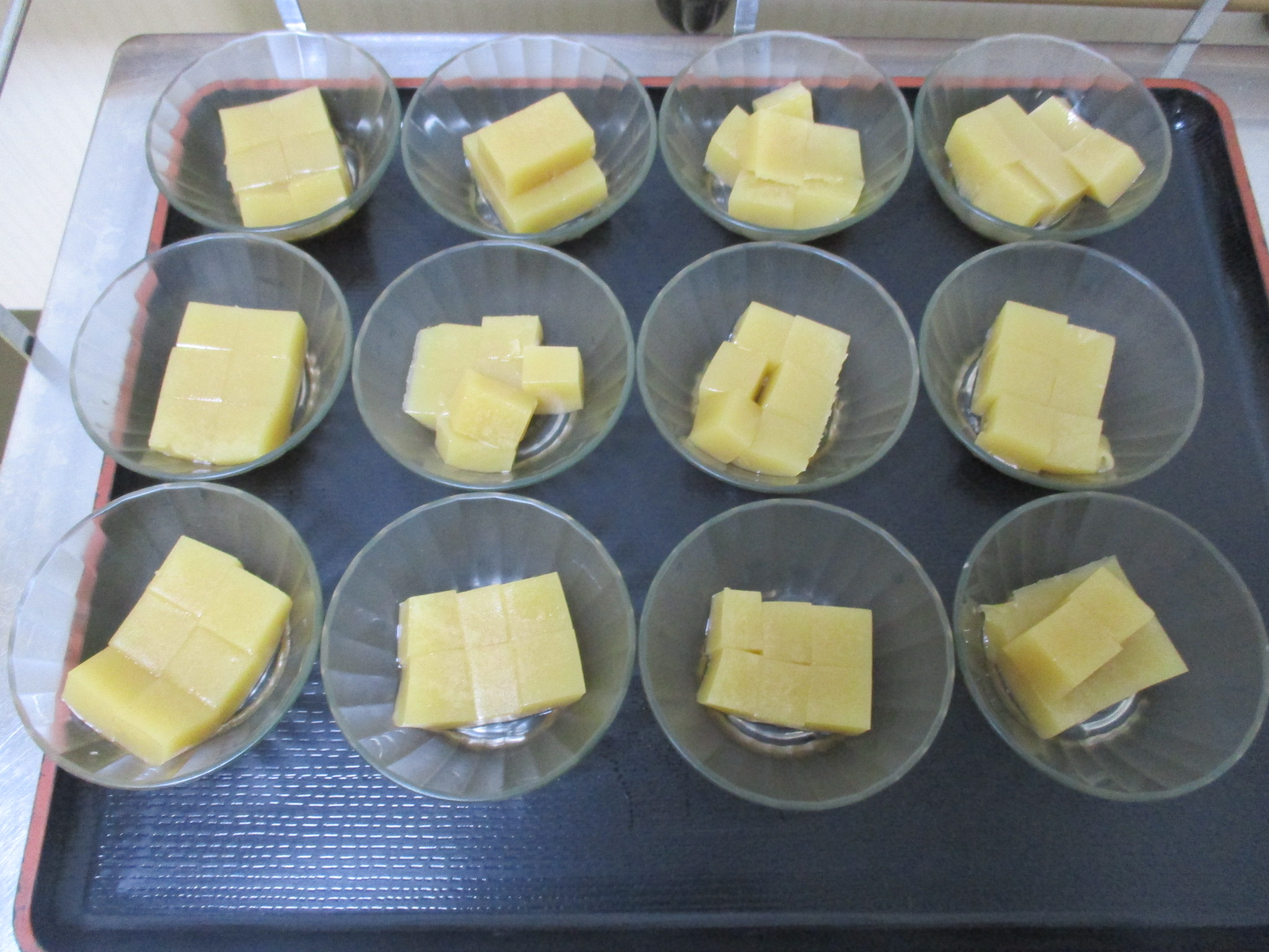 土いじりの後は本日のおやつで手作り芋羊羹です。