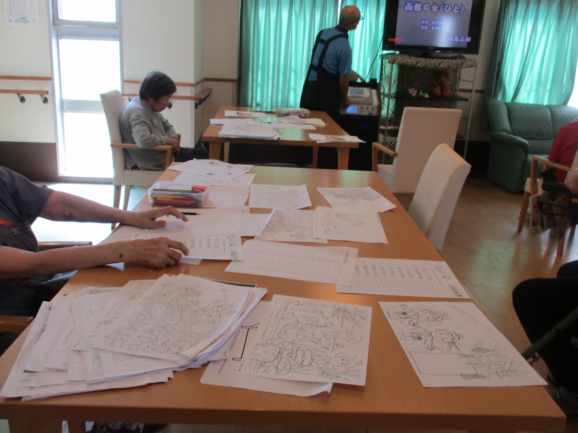 脳トレする入居者様とカラオケをしている入居者様とで賑わっています。