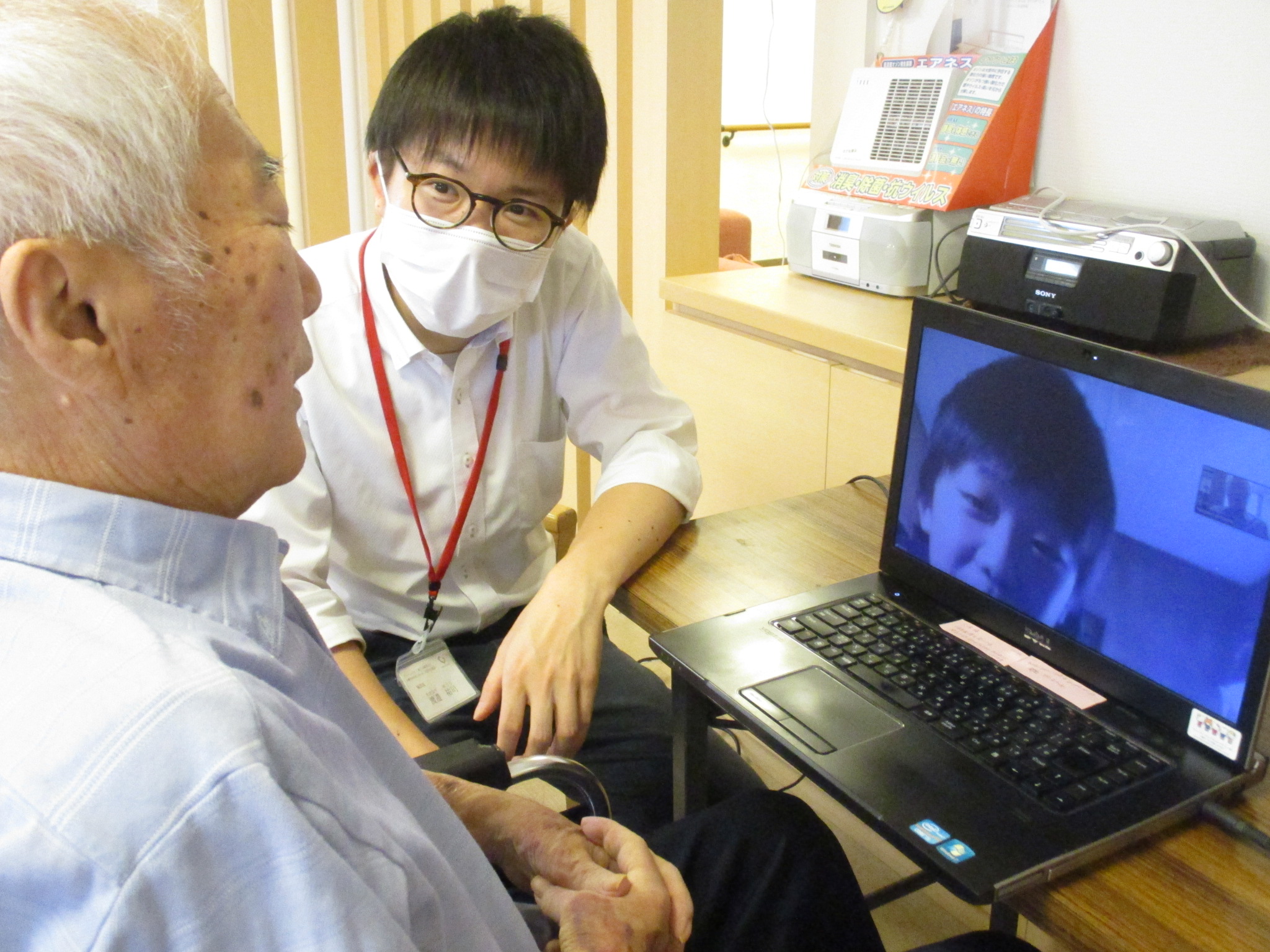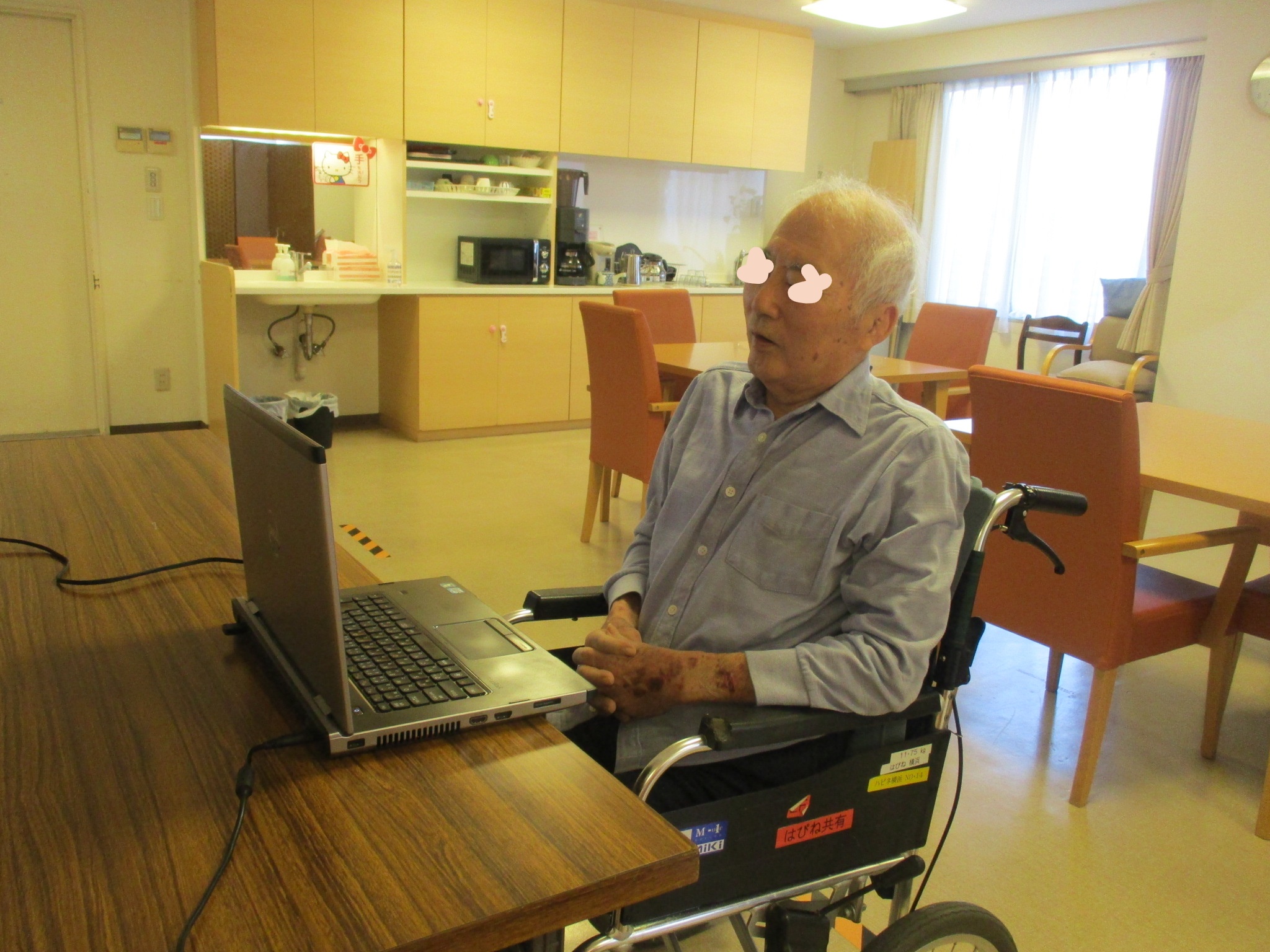 パソコンに映し出されるご家族、お孫さんの姿はしっかりと目に入っているようです。