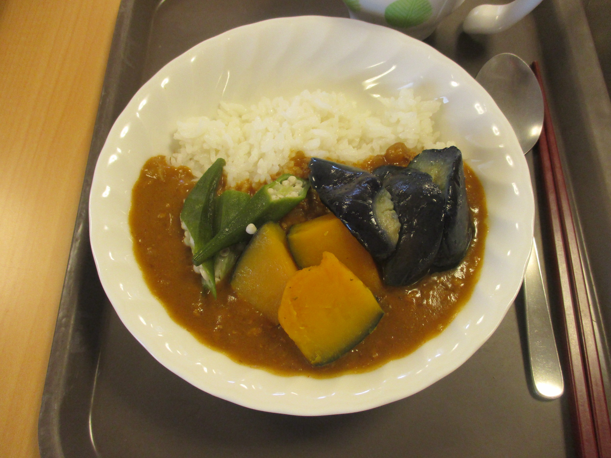 夏野菜のカレーを食べて栄養満点、体力をつけて夏に負けない体つくりをしましょう。