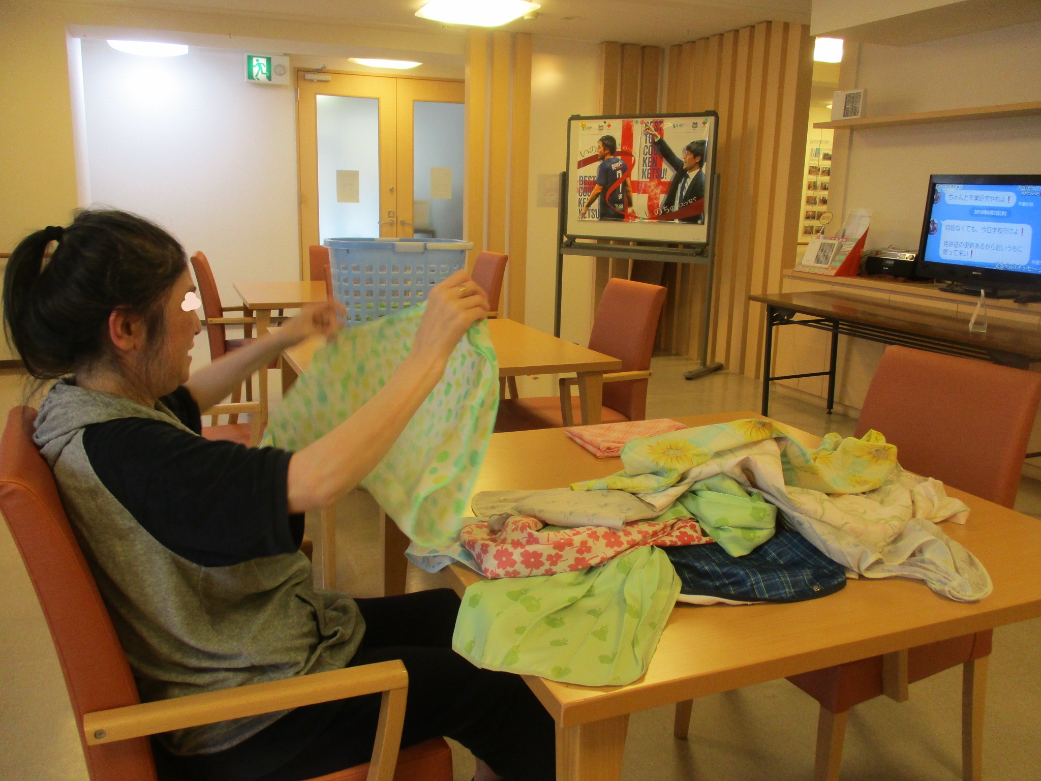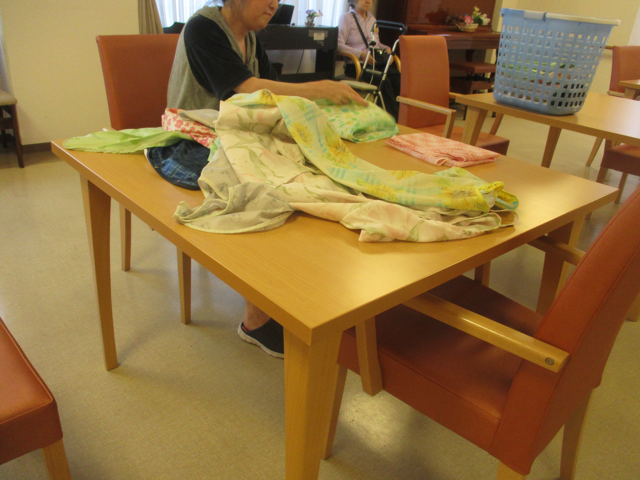 今日は、お声をかけて一緒にエプロンを畳んで頂きました。