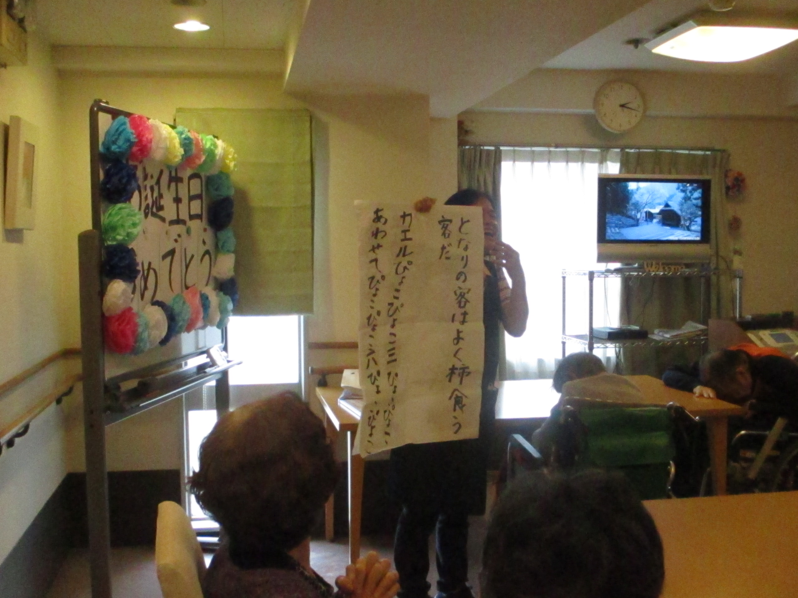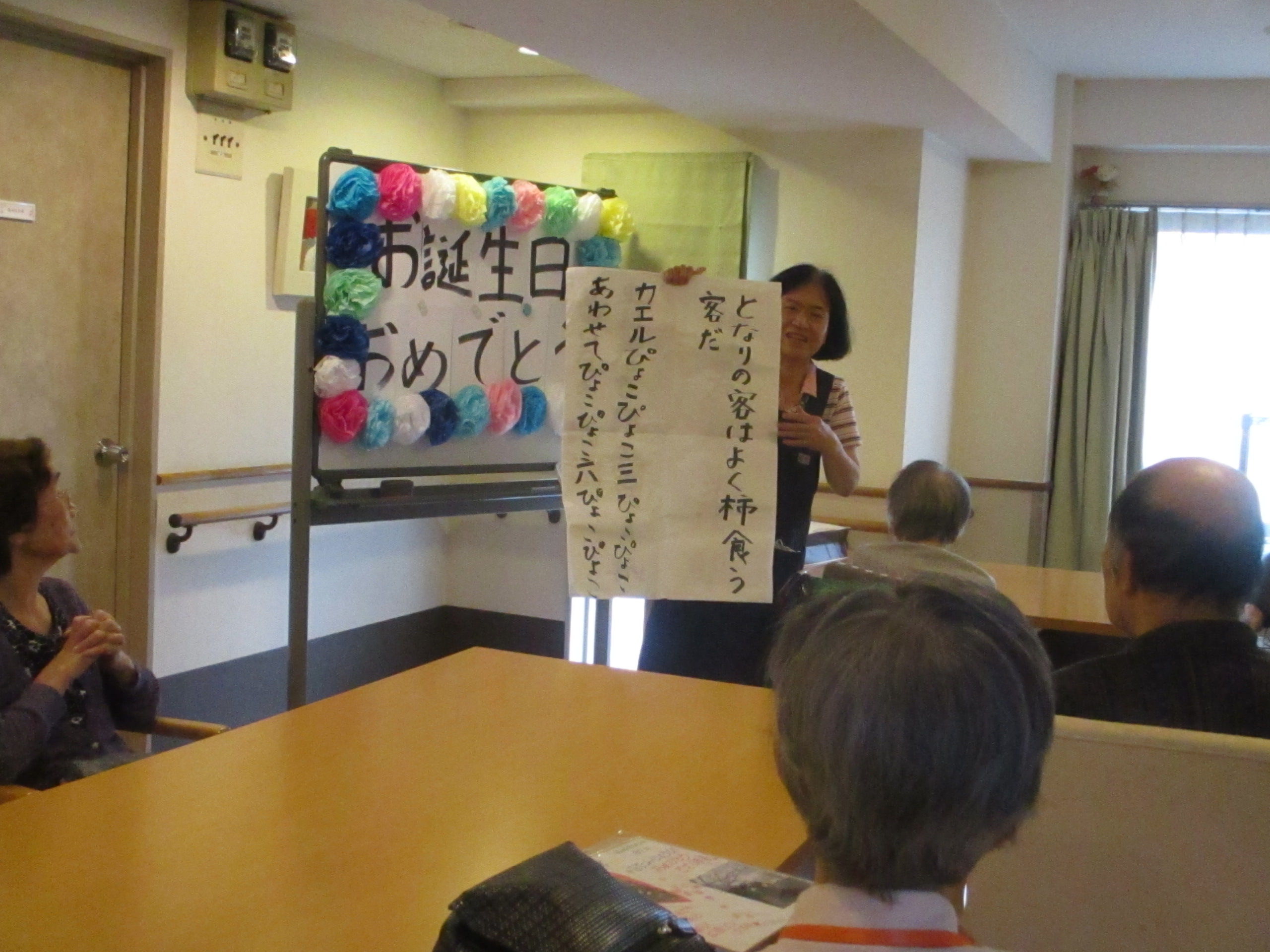 皆さんで、早口言葉やビンゴゲーム、歌を歌いながら楽しいお誕生会になりました。