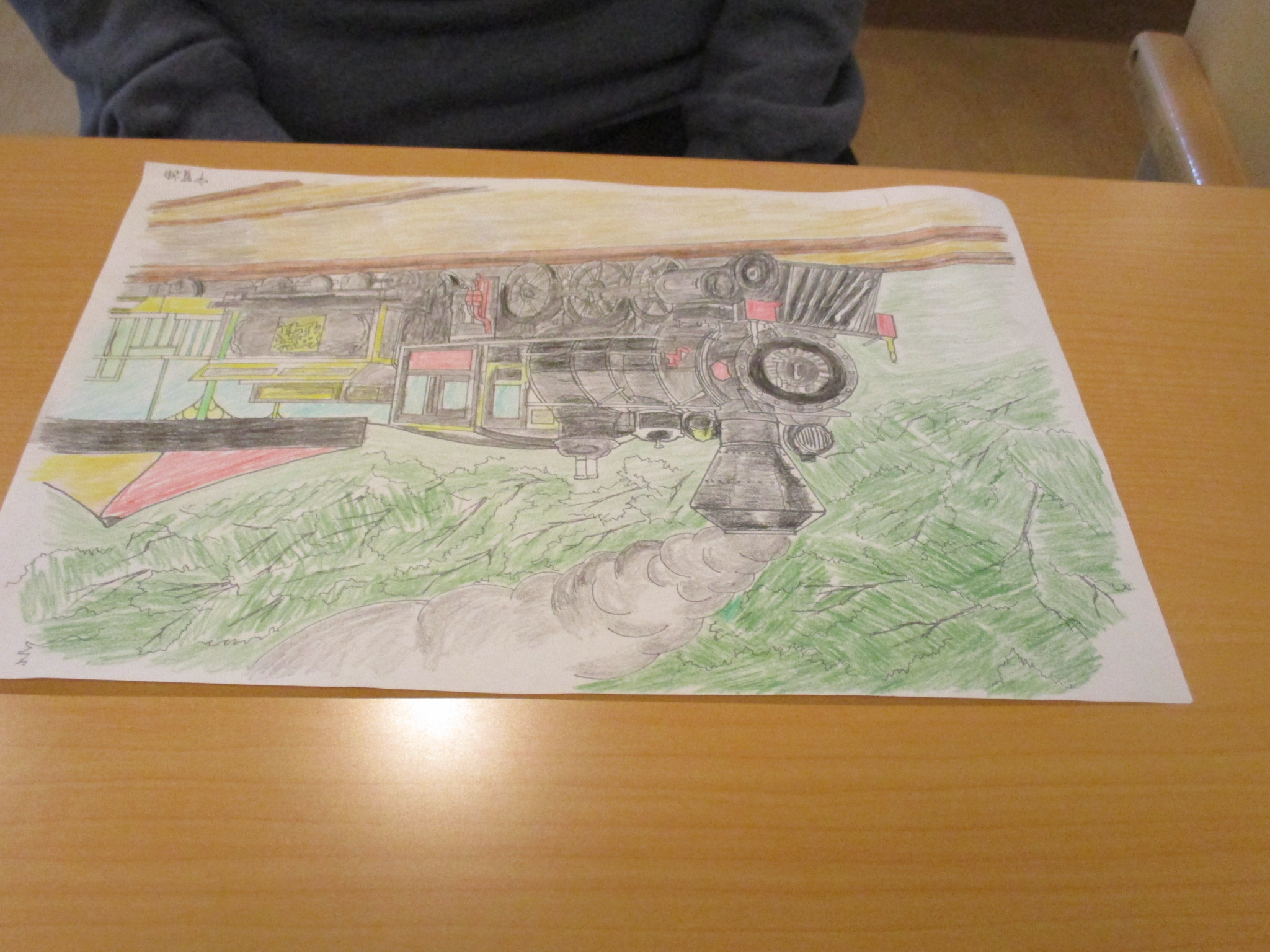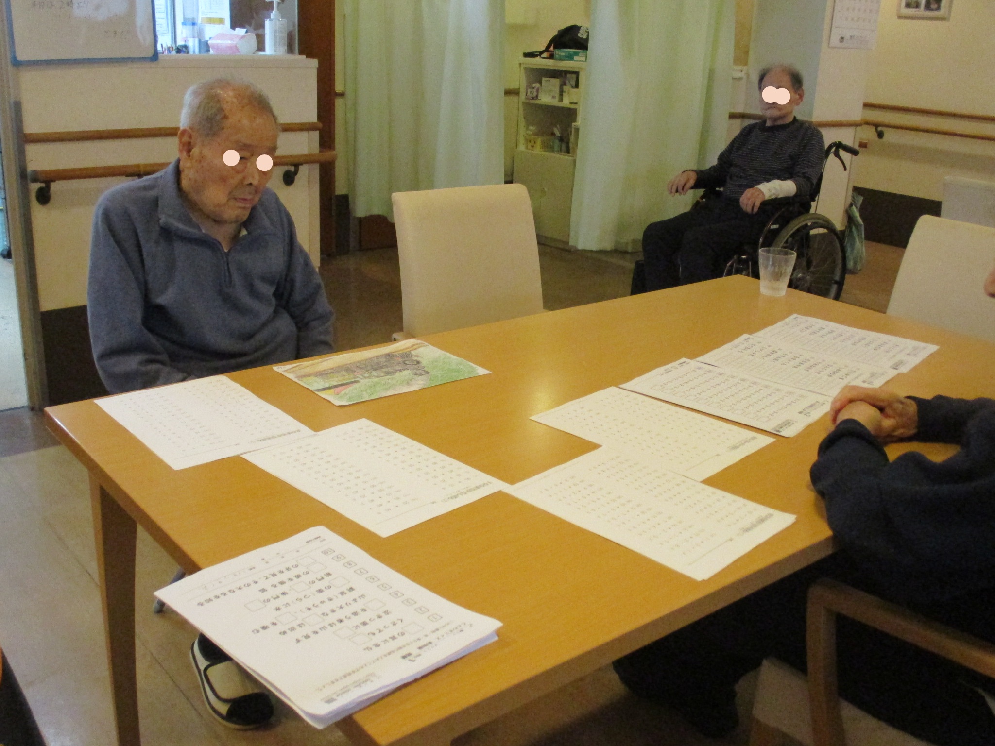 本日は脳トレでプリントの計算や塗り絵とスタッフによる歌で楽しみました。