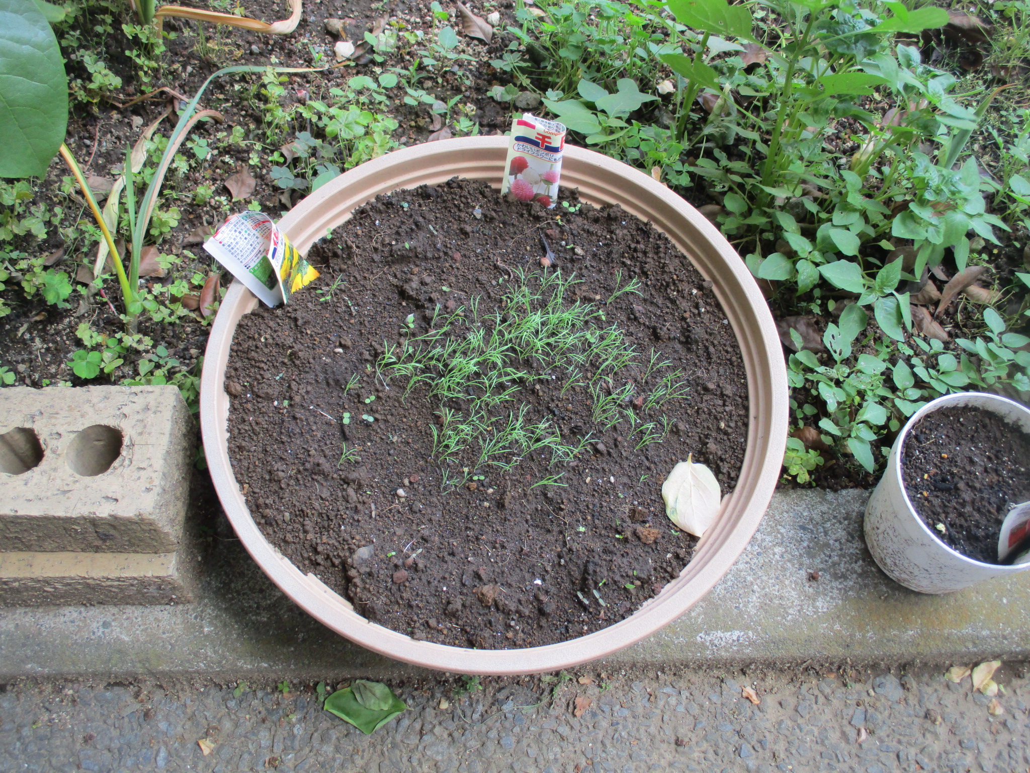 モデルルームの下の庭には、園芸クラブの植えた花の芽が出てきています。