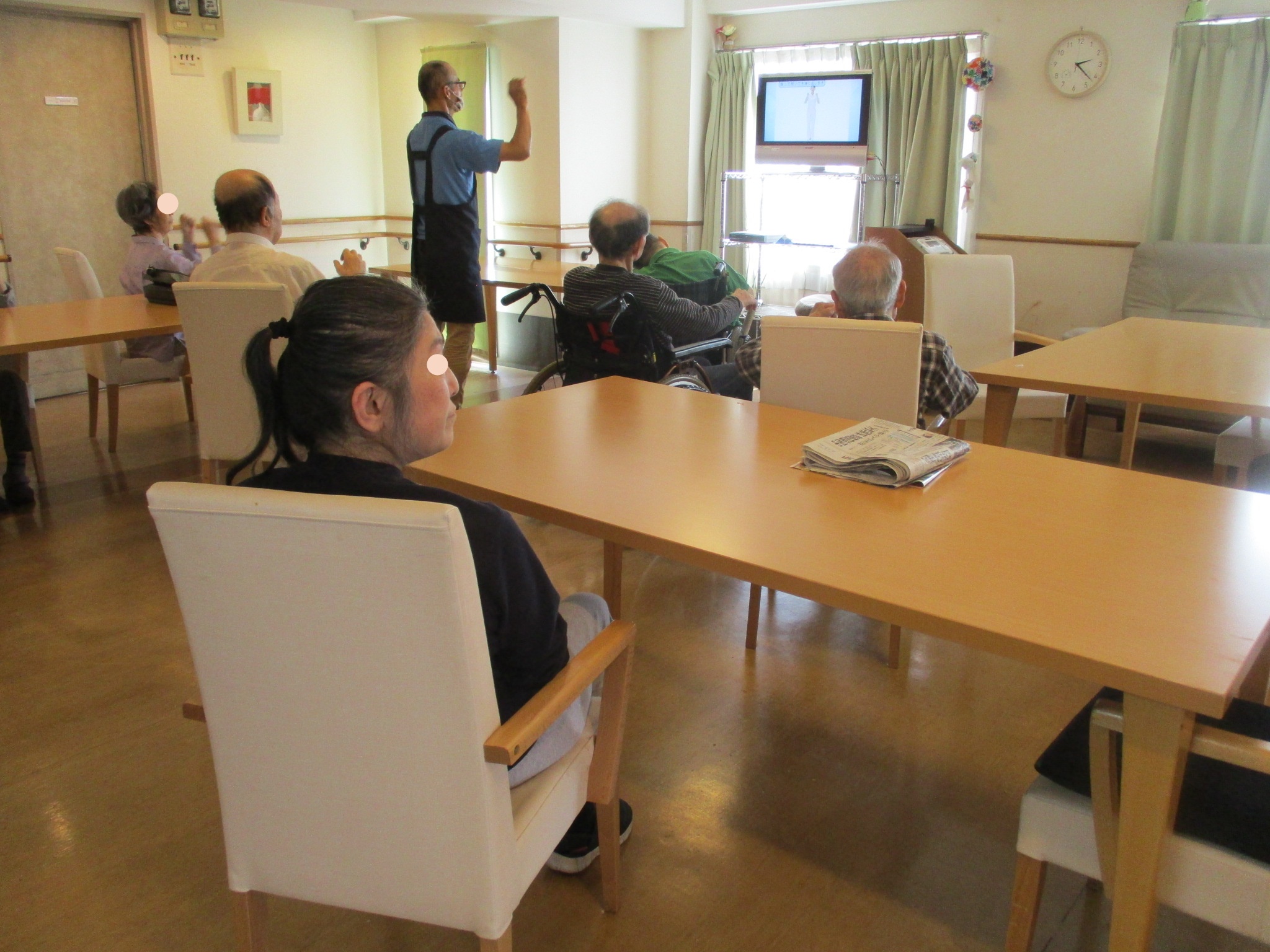 本日のアクティビティは、スタッフ自慢の健康体操です。
