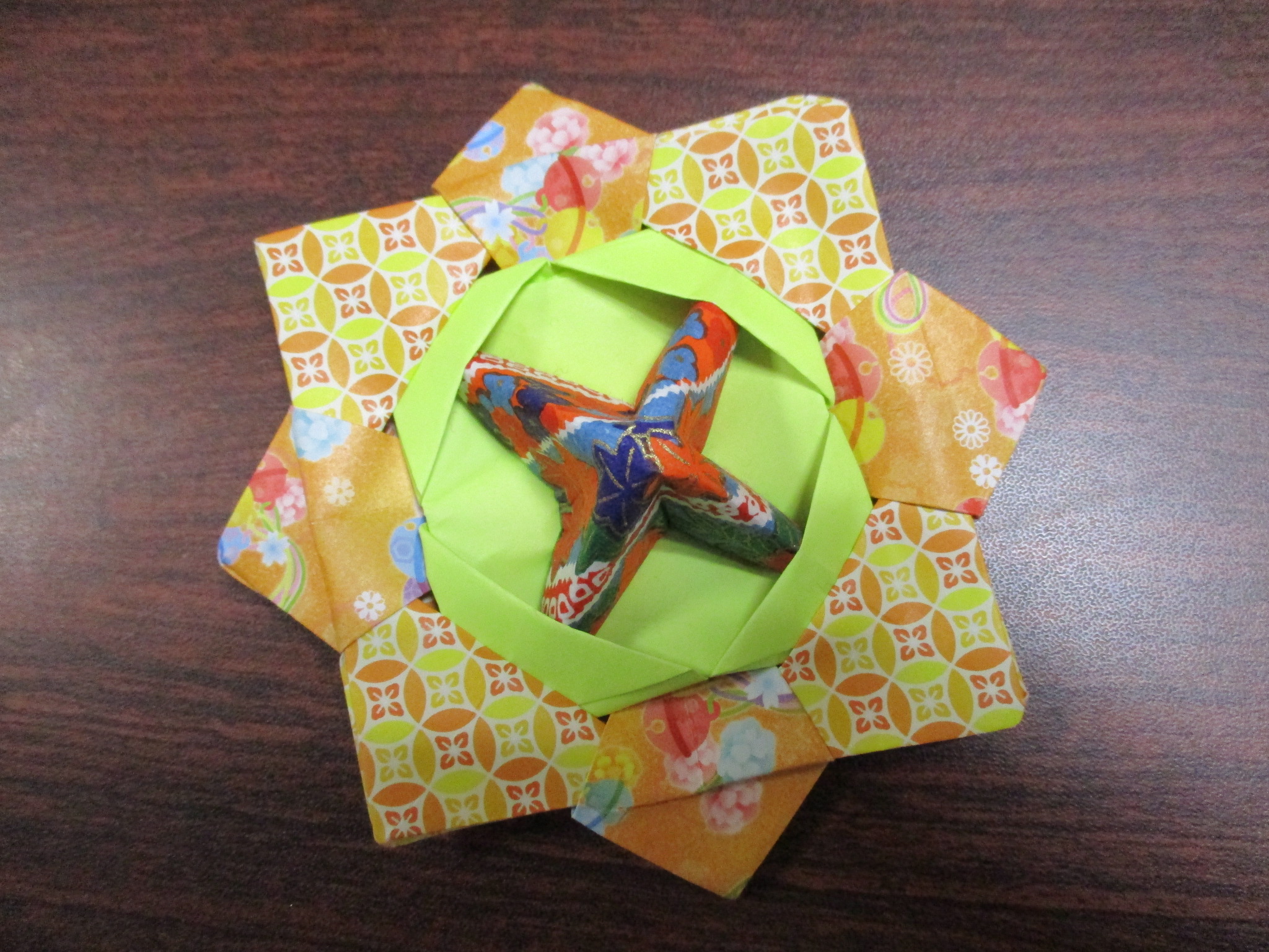 今回は、懐かしいコマの折り紙の作品です。