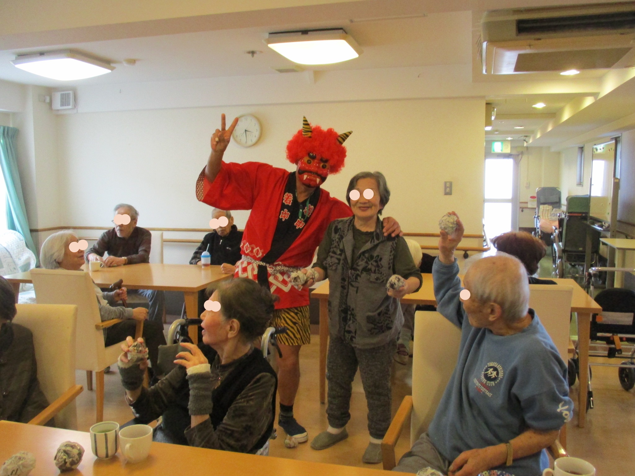リビングでは、鬼がきて入居者様の皆様は可愛い鬼に怖いどころか笑顔でにっこりです。