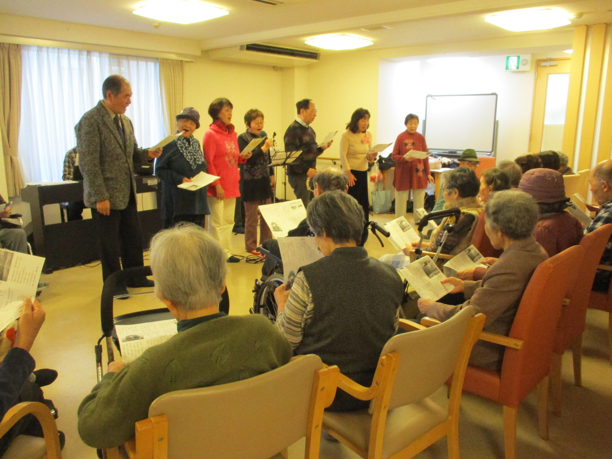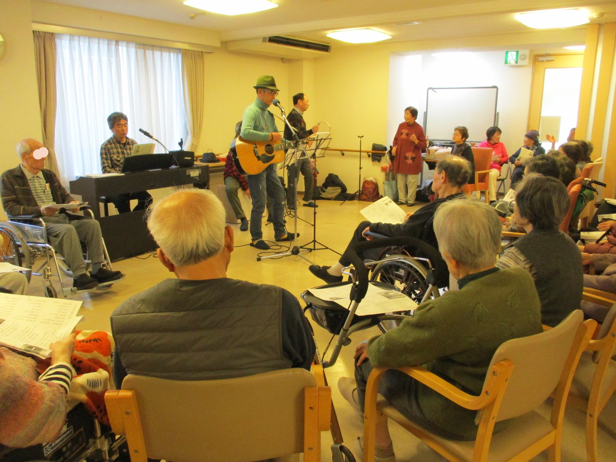 楽しい音楽とトークで参加頂いた入居者様のお祝いに誕生会も盛り上がりました。