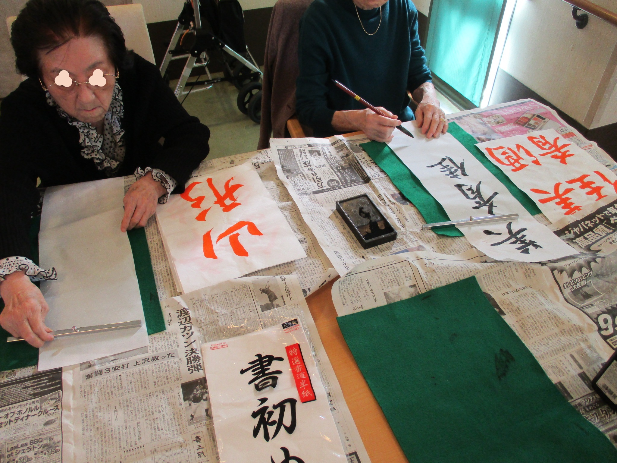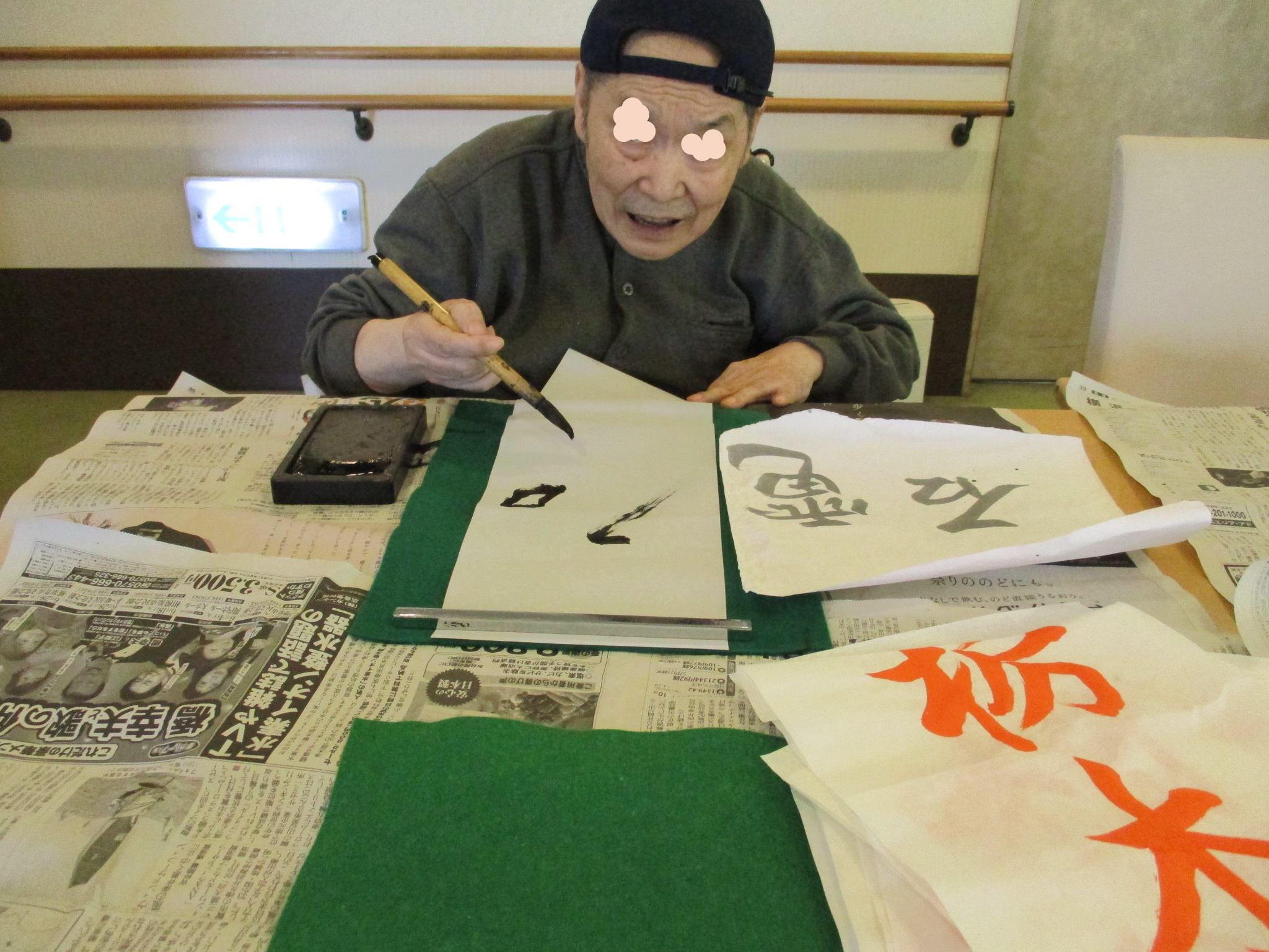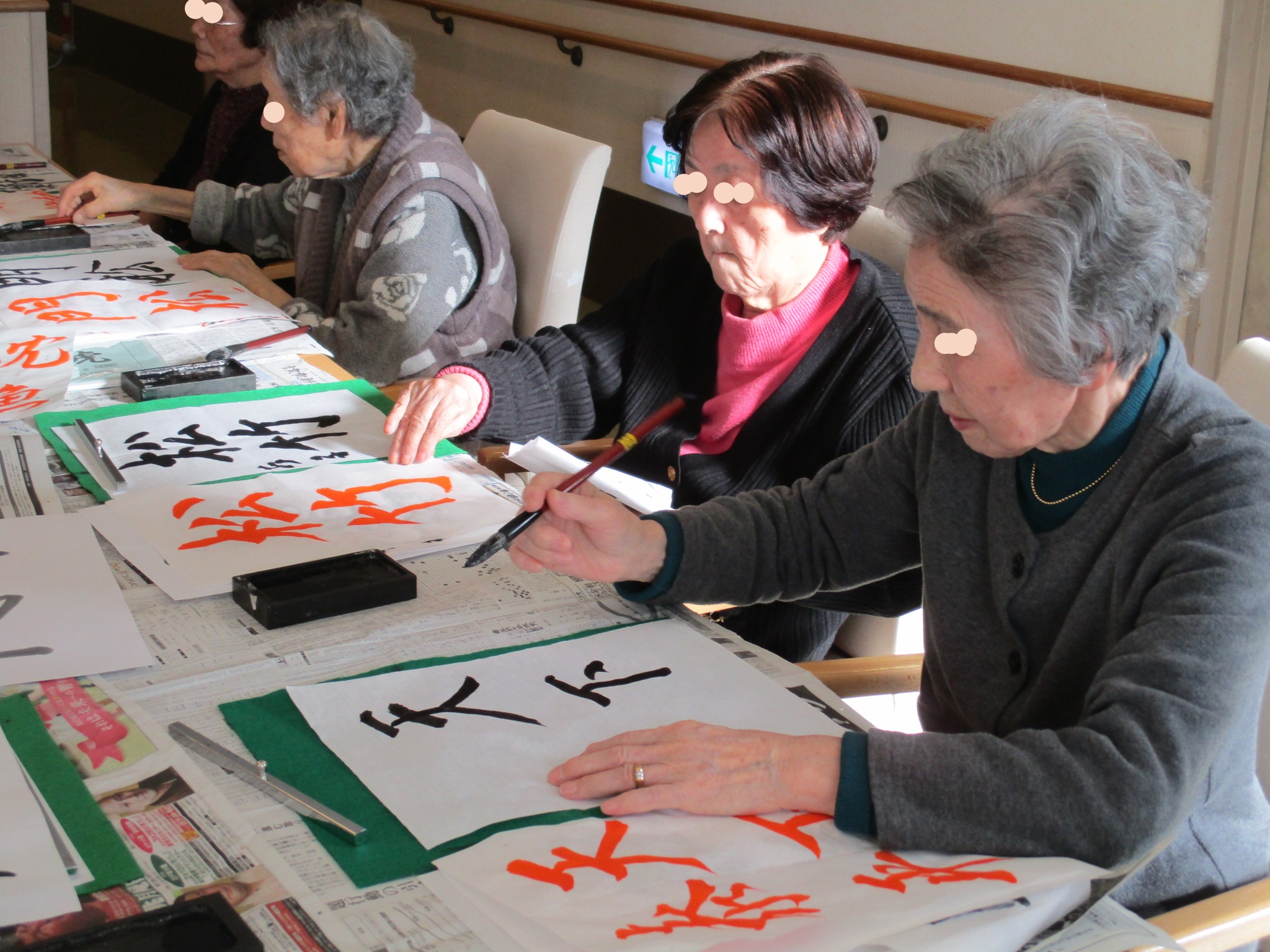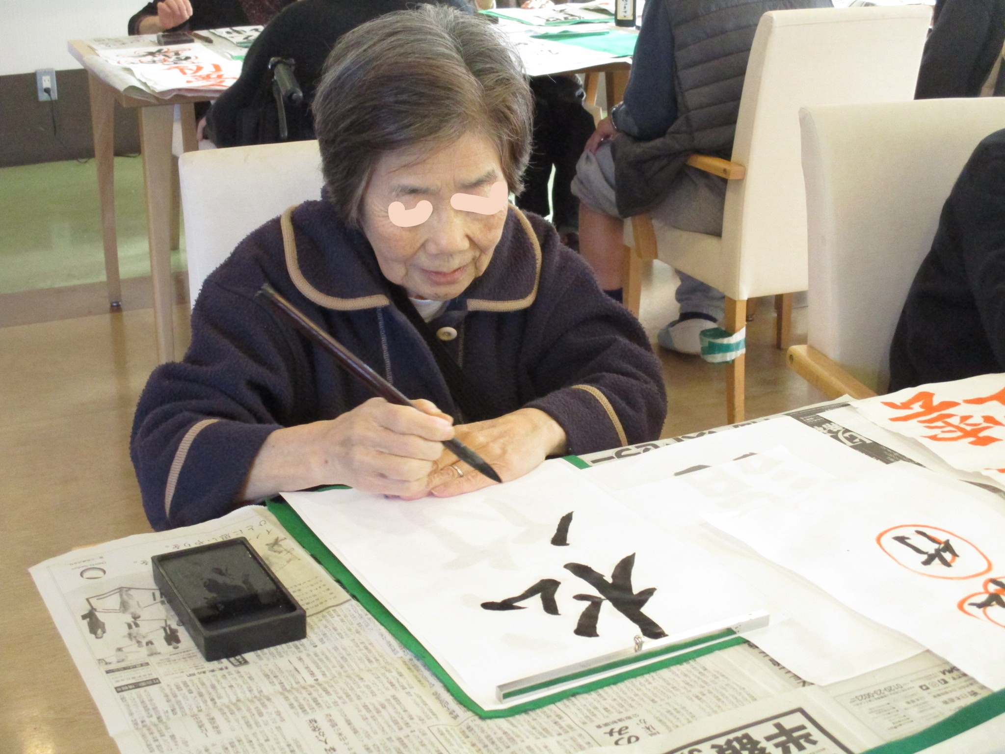 毎月恒例のアクティビティの書道ですが皆様一生懸命です。