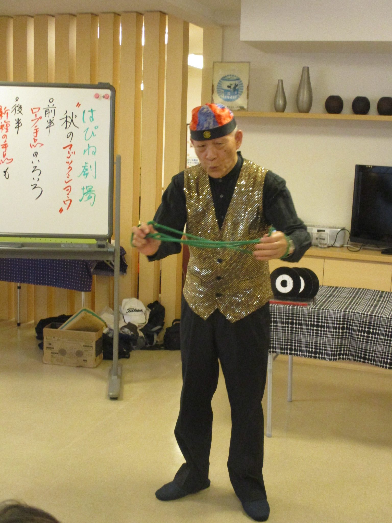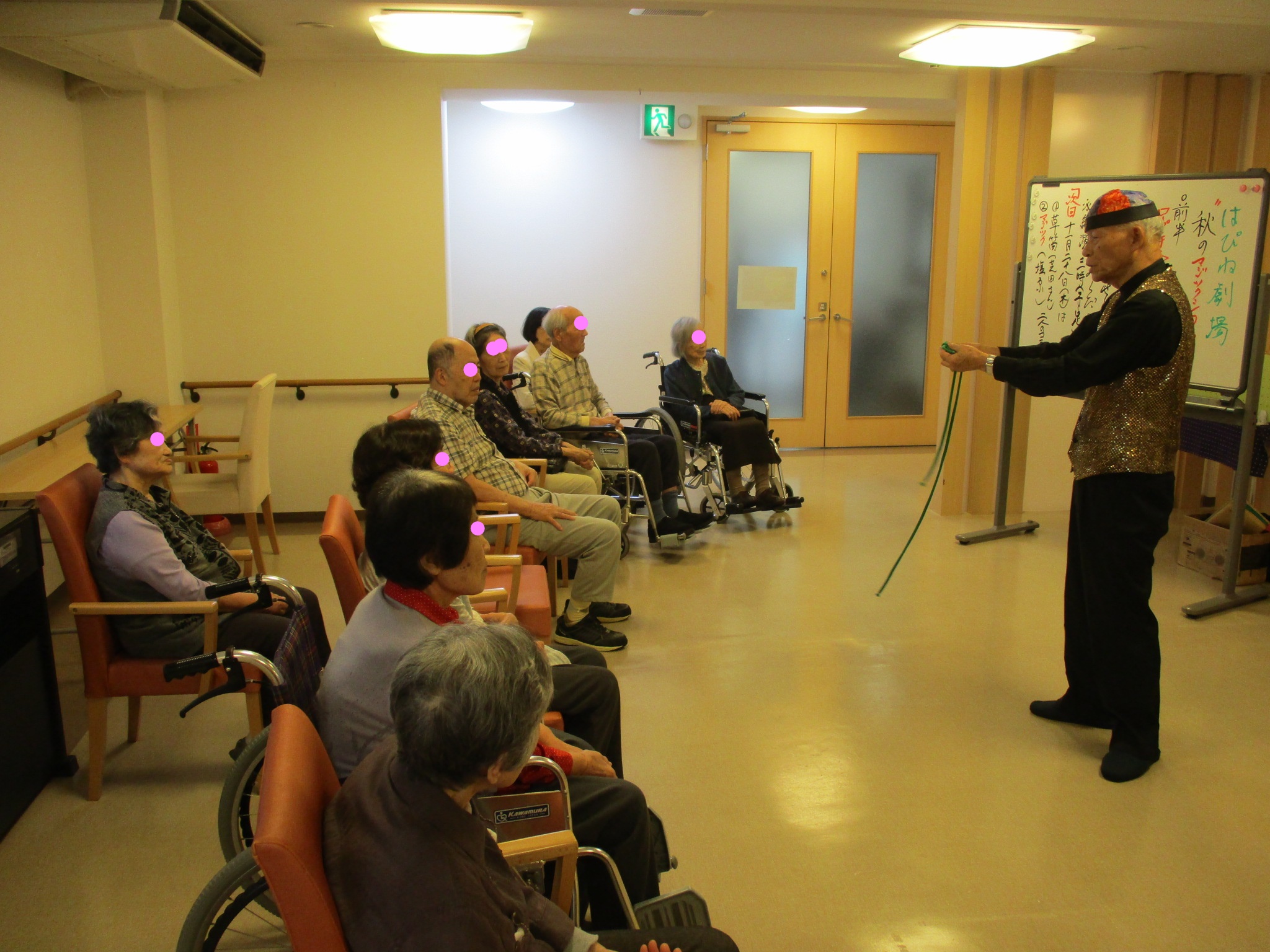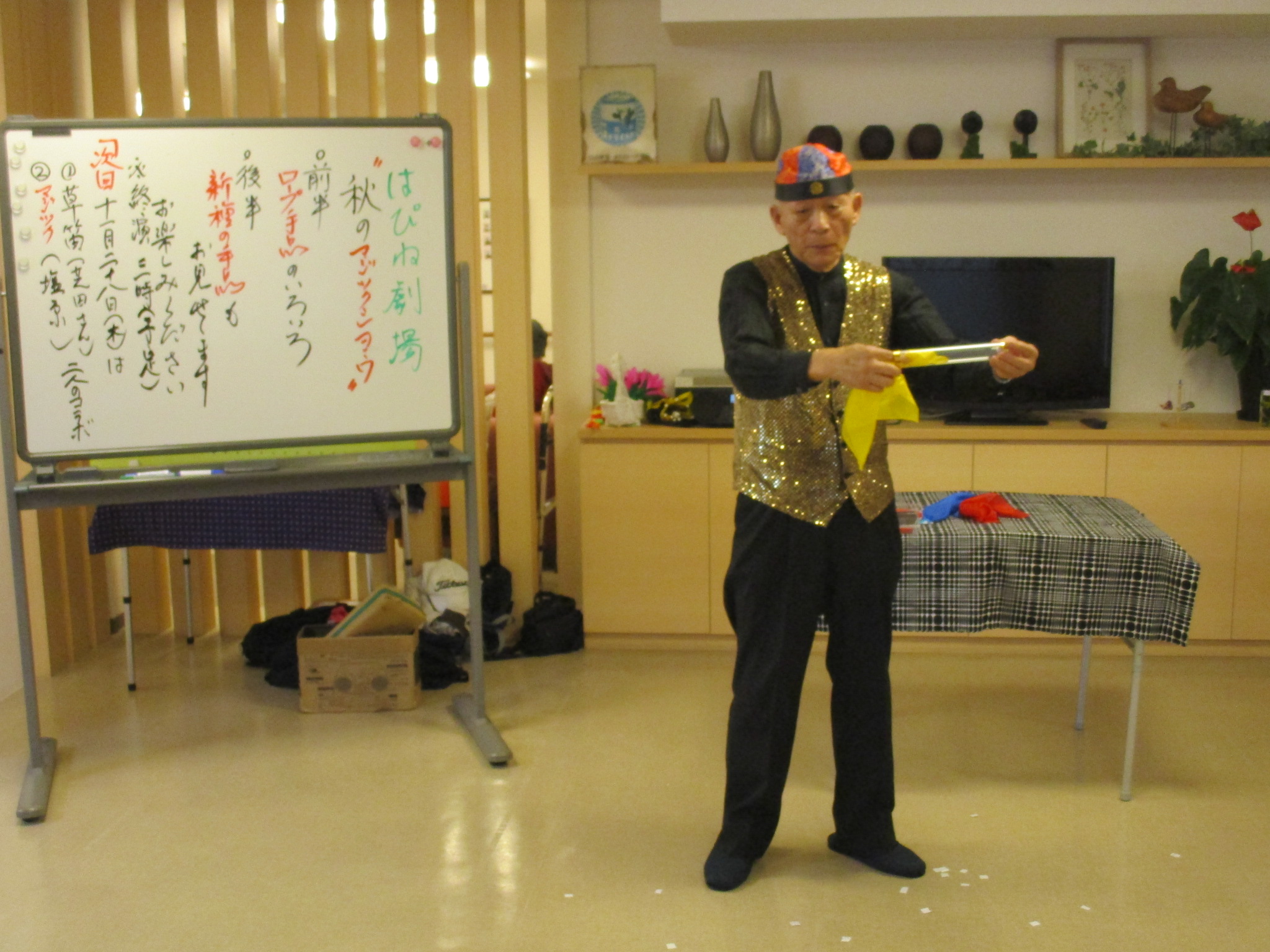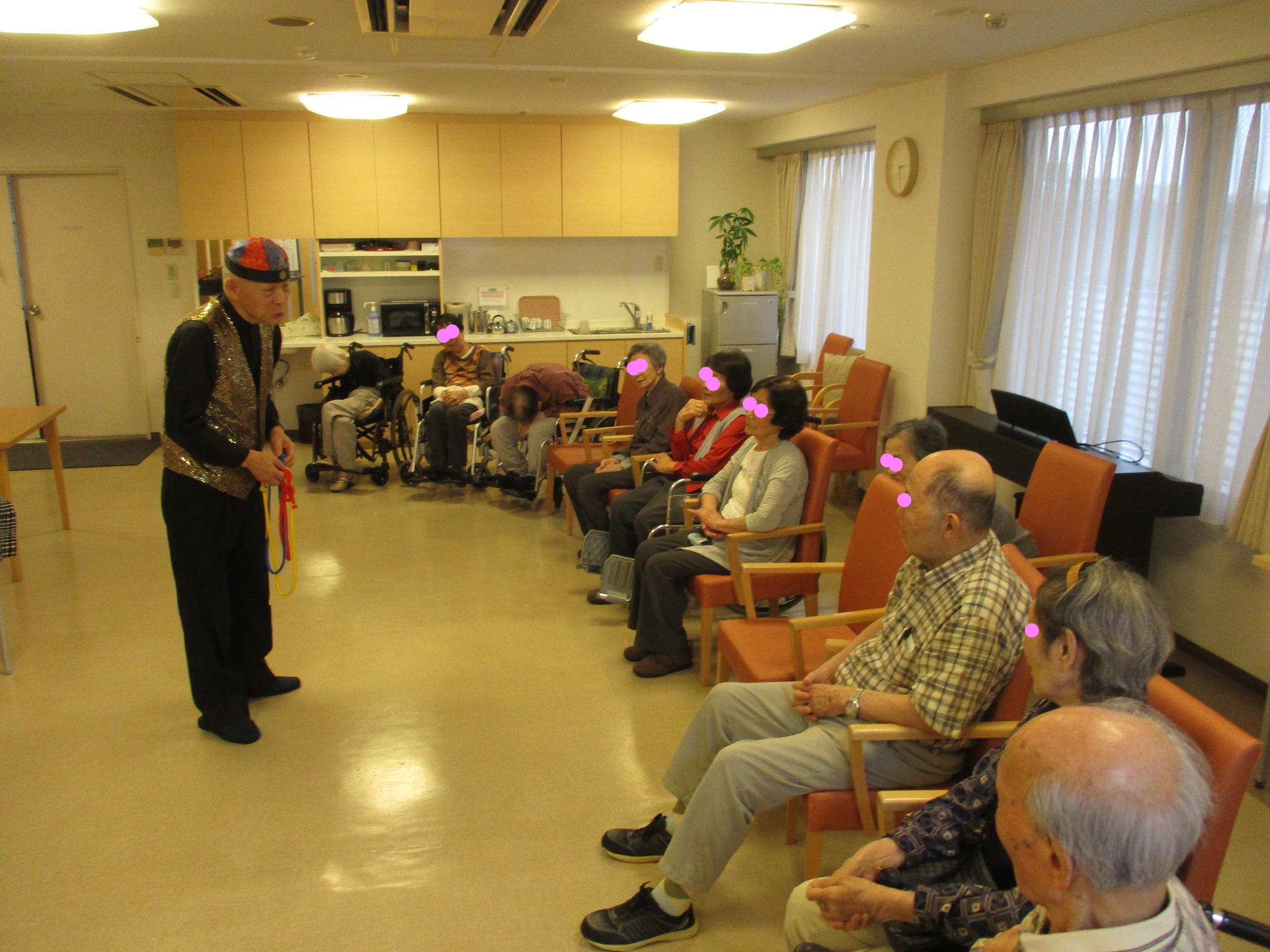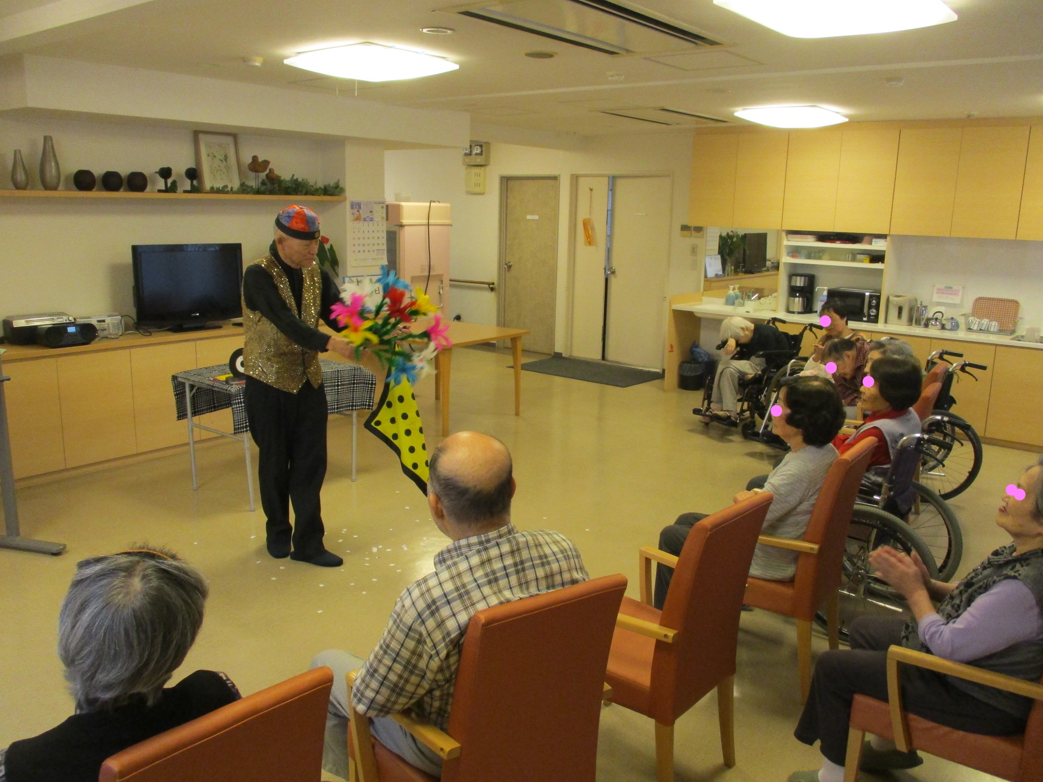 本日のアクティビティーは、月に一回の皆様がとても楽しみにしているアクティビティの一つであるマジックショーです。