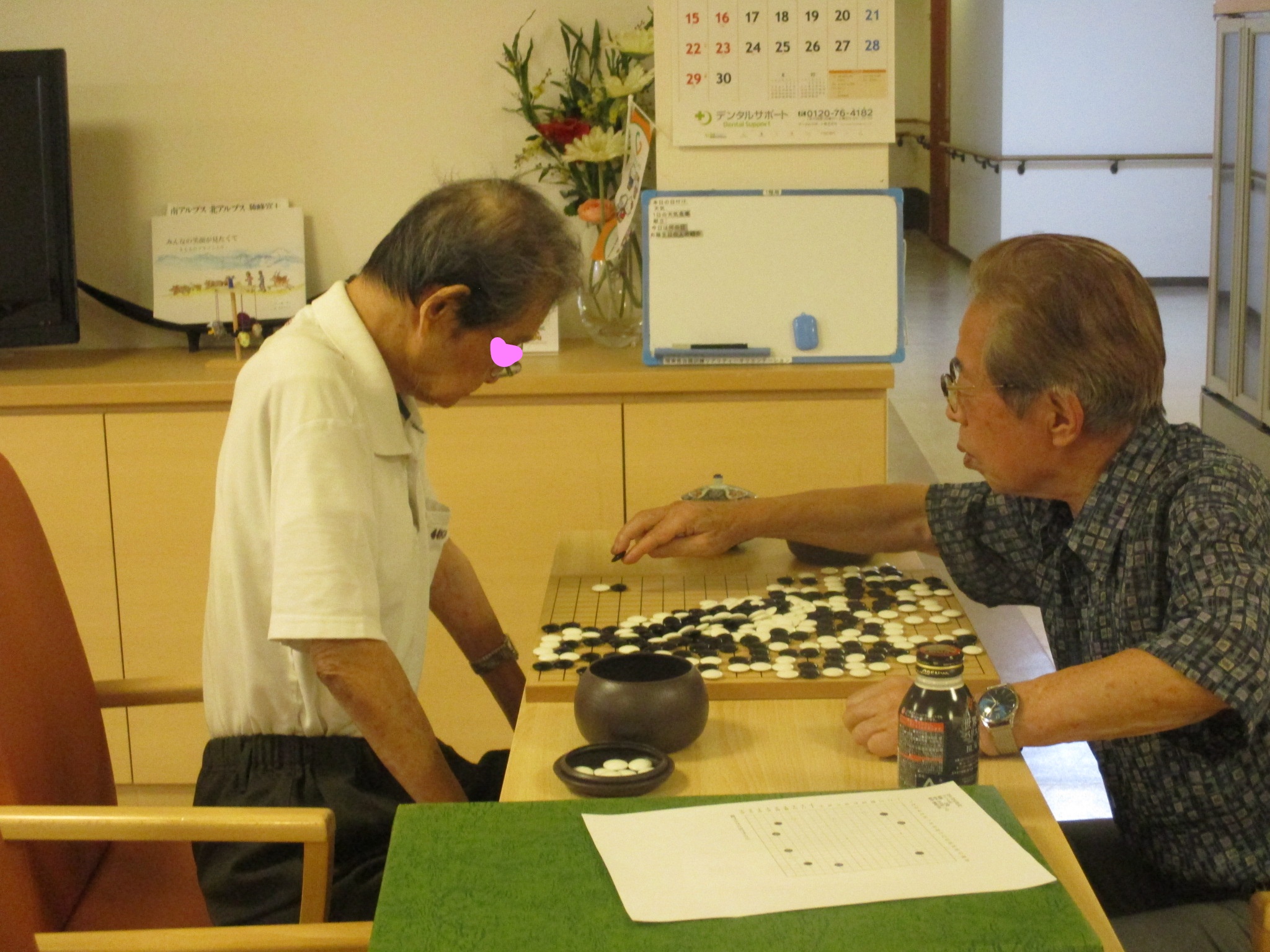 男性入居者の方が主に参加していますが、一対一の勝負な為時間も長丁場になります。