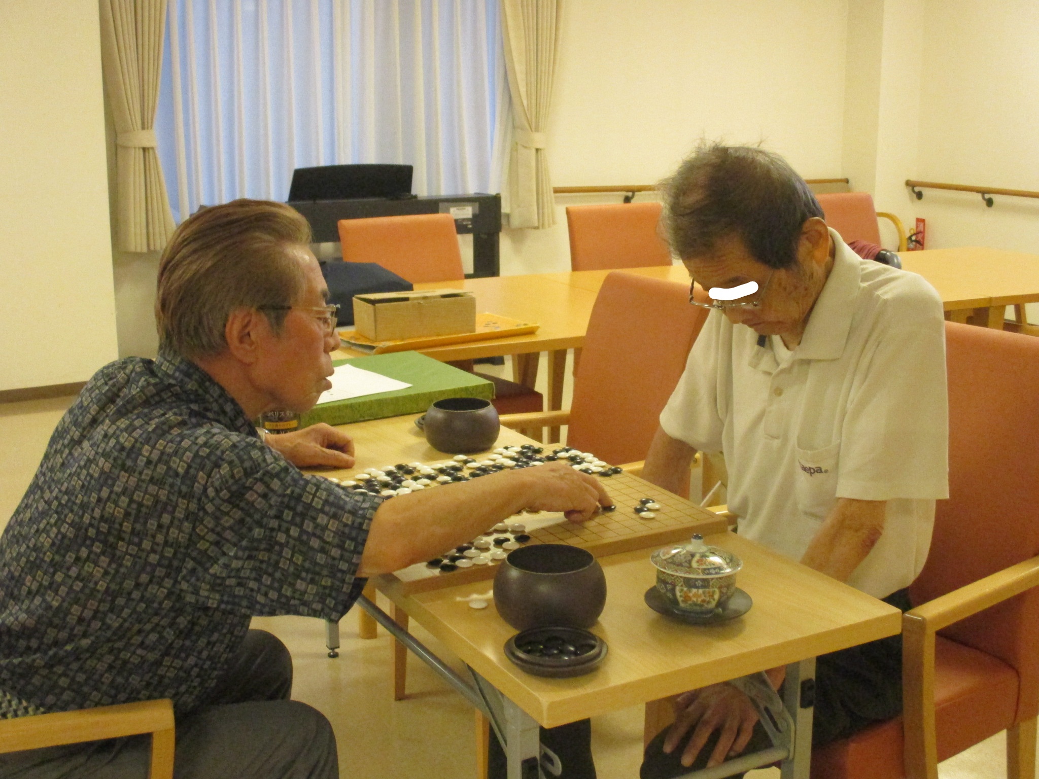 1階では囲碁が行われています。囲碁も毎週毎週先生が来られて指導して頂けます。
