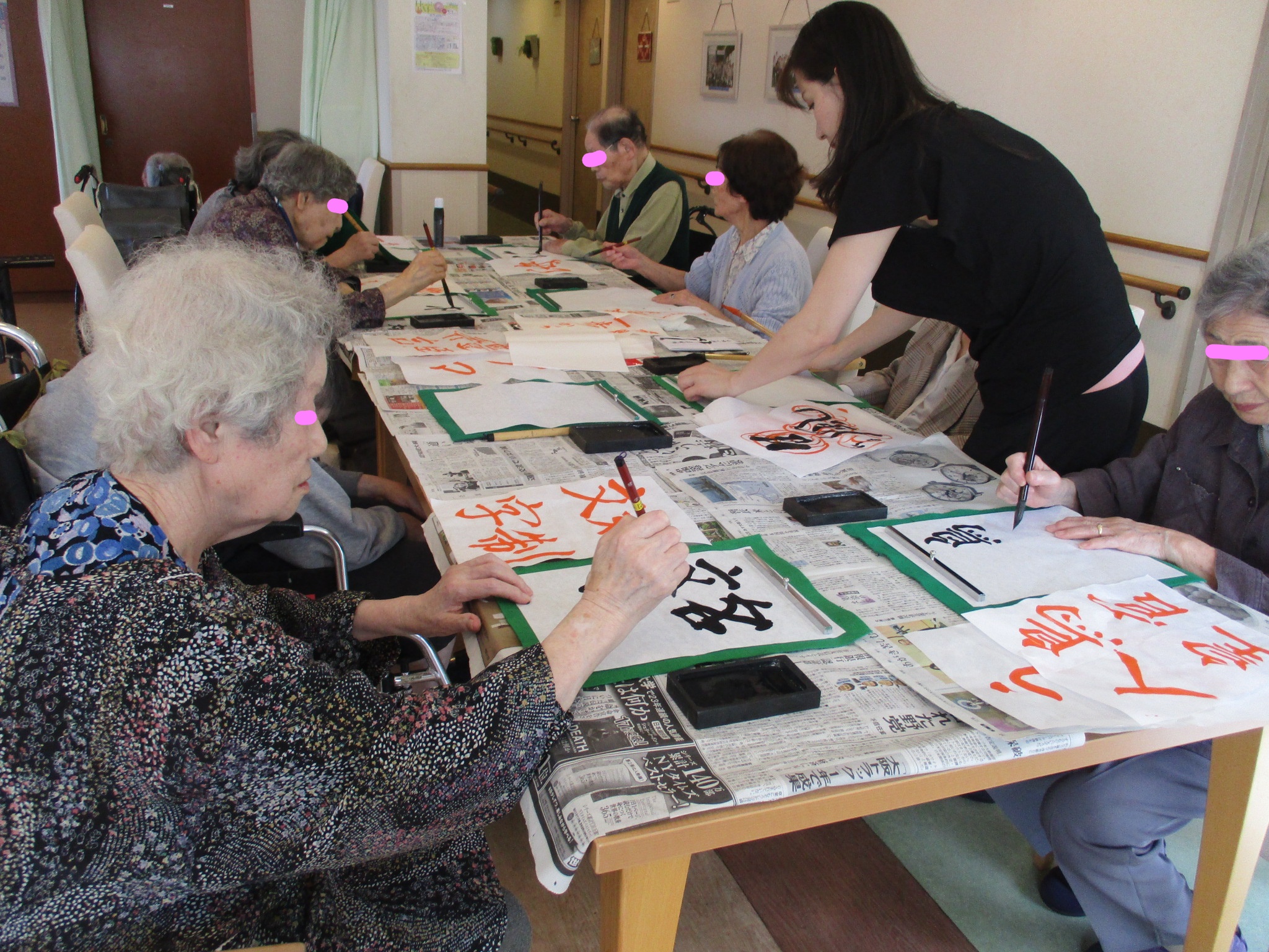 今回も書道教室を楽しみにしていた皆様が、いつになく真剣に取り組んでいる姿に思わず先生も熱が入ります。