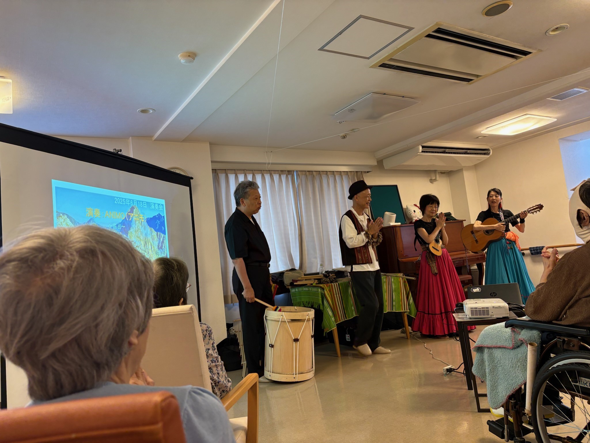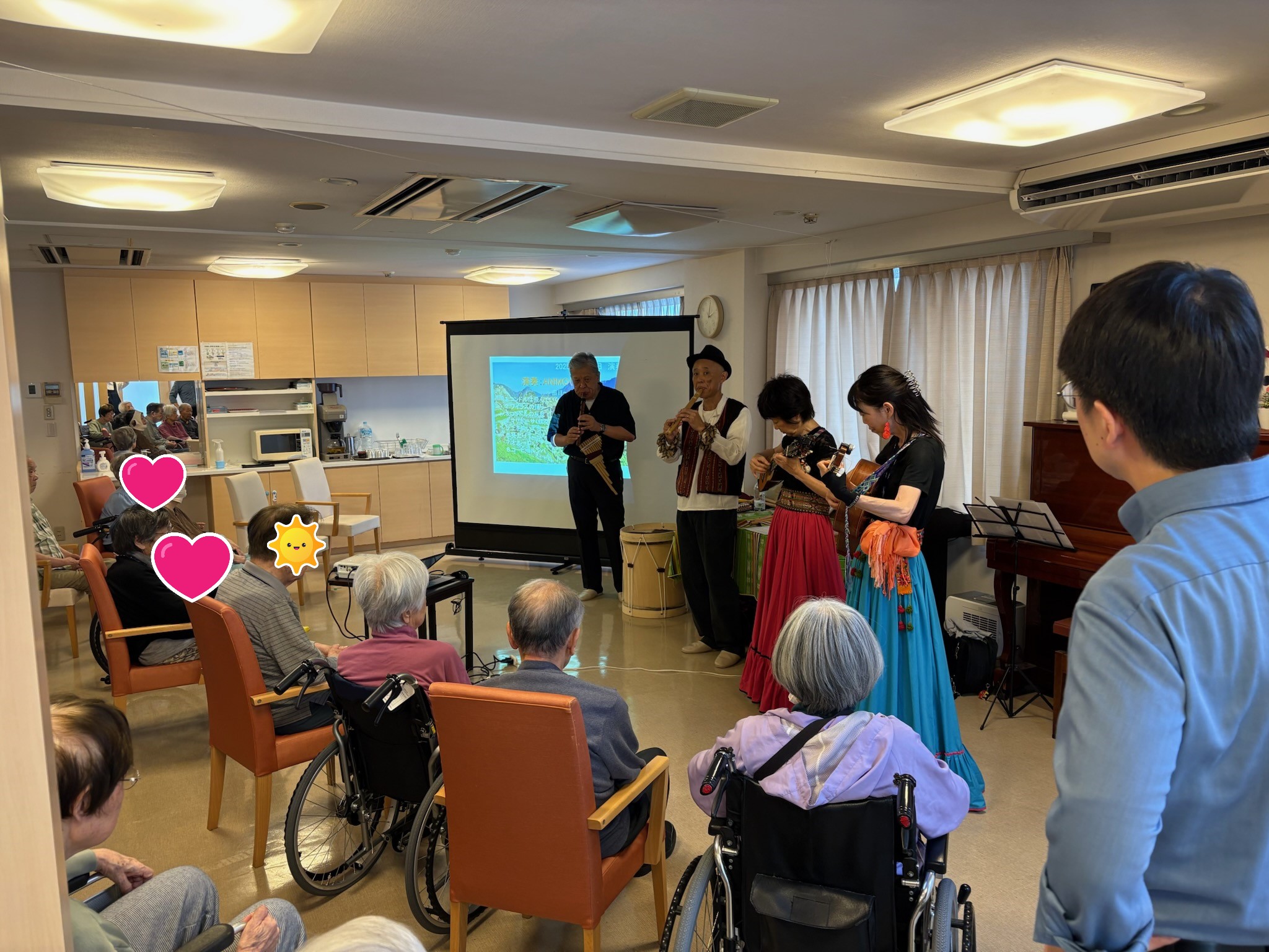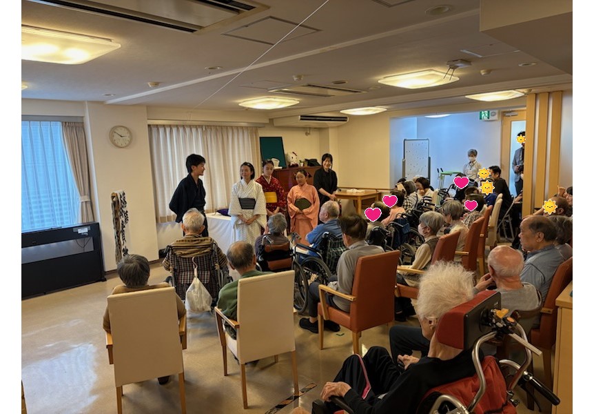トップページ > 施設を探す > はぴね横浜 関連 介護付有料老人ホーム はぴね横浜 施設へのお電話は 045-989-0525 9時00分~17時30分 (365日受付) 入居に関するお問い合わせ 0120-1165-14 施設の特徴 施設概要 料金プラン 施設のアルバム «前へ23456次へ » 2025年07月07日 フラダンス 本日のアクティビティは『フラダンス』でした😁 3名のダンサーの方の踊りに皆様笑顔で手拍子をされていました♪ 気温が高かったこともあり、南国の気分を味わえたかと思います♪ 関連 2025年06月25日 フラワーアレンジメント 本日は『フラワーアレンジメント』がありました🌻 先生に教わりながら一輪ずつ花をいけていき、皆様それぞれの綺麗な作品が出来上がっていました🌹 完成した作品を持って各フロアへと戻られ、眺めながらおやつを召し上がられていました🌸 関連 2025年06月19日 アンデスの音色 本日は『ハッチャマリクコンサート』がありました♪ 演奏されるアンデス地方の音楽は素敵な音色をしており、皆様も真剣に聞かれていました♪ 関連 2025年06月15日 落語 本日は『落語』のアクティビティがありました😁 『イクタアクターズスクール』の皆様に落語を披露していただきました😄 皆様真剣に落語を聞き、時には笑顔も見られ、落語を楽しまれていました😁 また、本日は『父の日』だったため、終わった後に男性入居者様にお花のプレゼントがありました🌻 皆様少し照れた様子で受け取られていました😊 関連 2025年06月03日 書道教室🖌 本日は『書道教室』がありました🖌 先生のお手本を見ながら一文字ずつ書かれていました😁 中でもK様は慣れた様子で一枚一枚ハイペースで書かれていました😲 関連 «前へ23456次へ » 近隣施設のご紹介 メディス足立 介護付有料老人ホーム グリーンライフ蕨 介護付有料老人ホーム シーハーツ川口 介護付有料老人ホーム メディス武蔵浦和 介護付有料老人ホーム