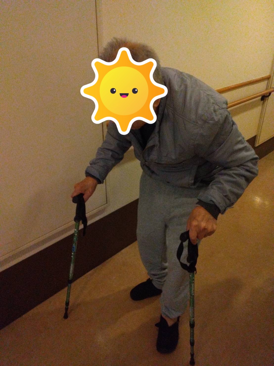 二本の杖を上手く活用し、廊下を一生懸命歩かれていました。