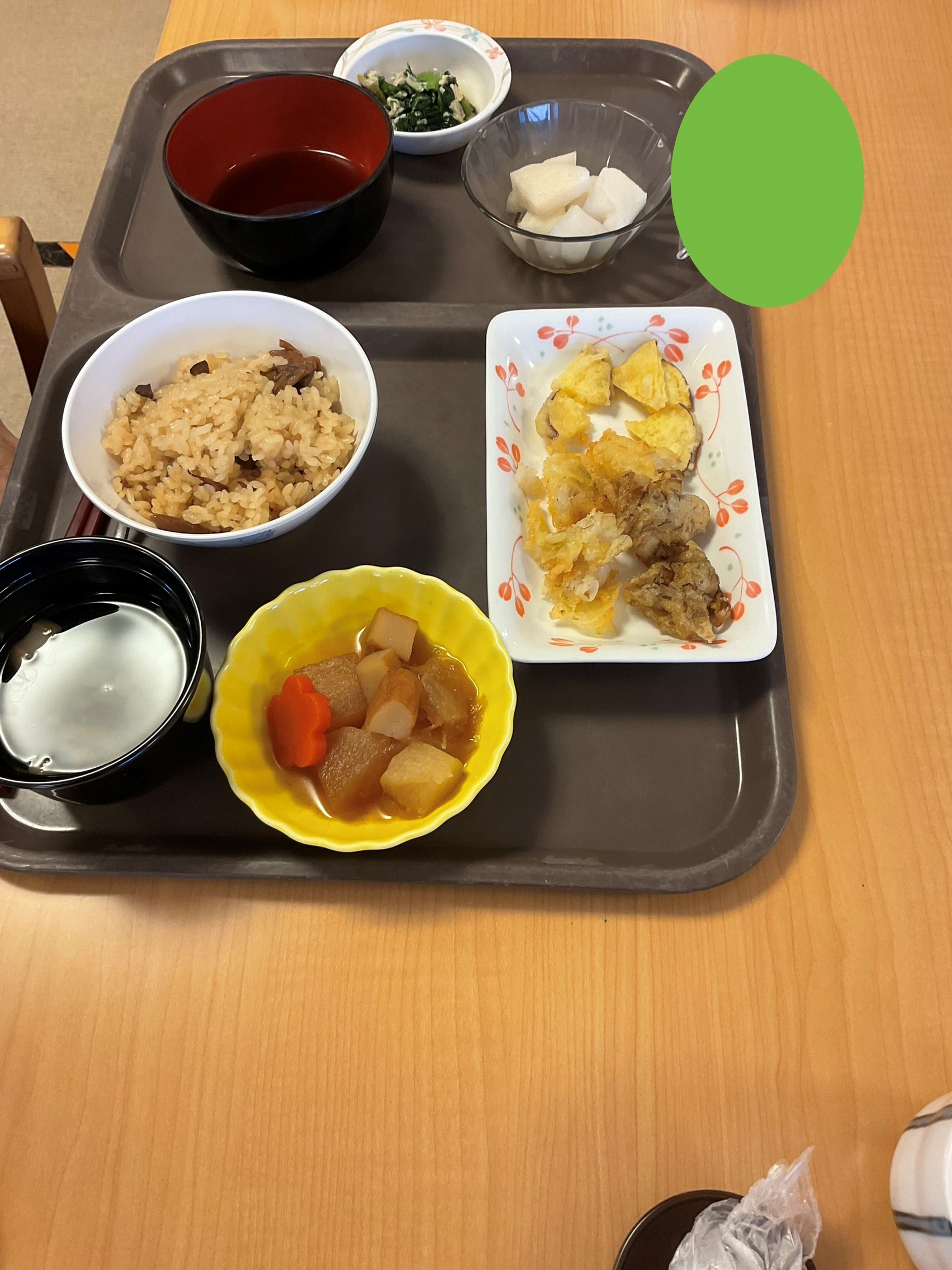 今日のお昼はきのこご飯にマイタケの天ぷらときのこづくしでした!
