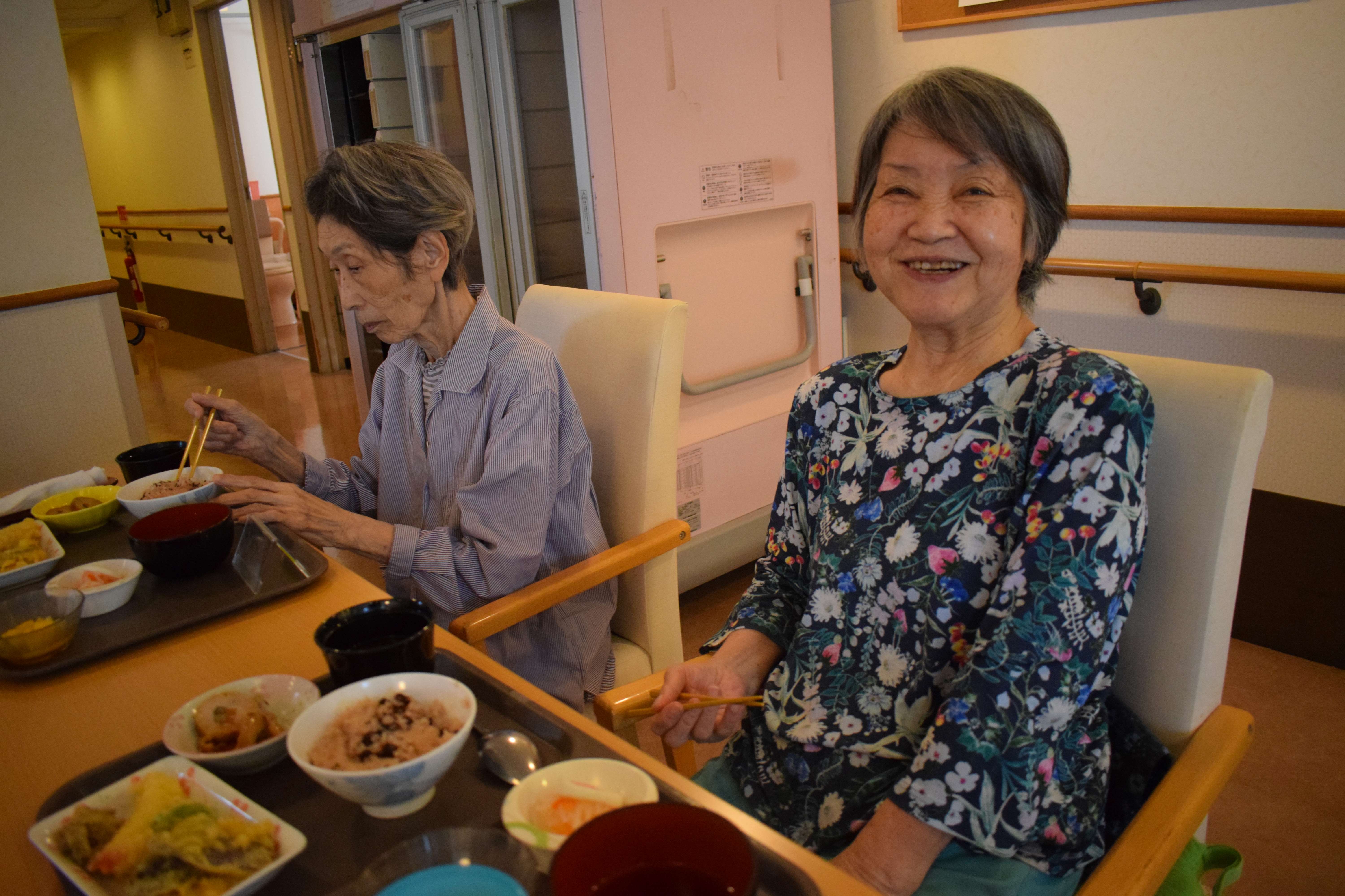 お昼にはお赤飯や天ぷらといった豪華なメニューが出ており、皆様喜ばれていました😆