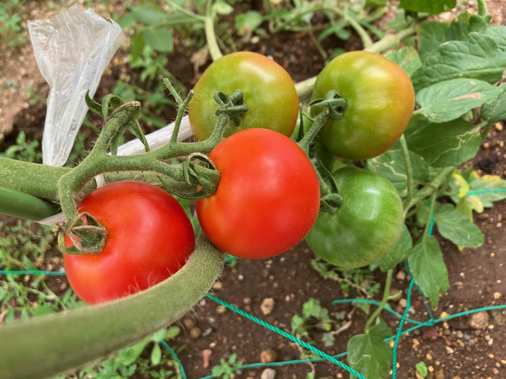 はぴねのお庭に植えてあるトマトが真っ赤に実っていたので収穫しました🍅