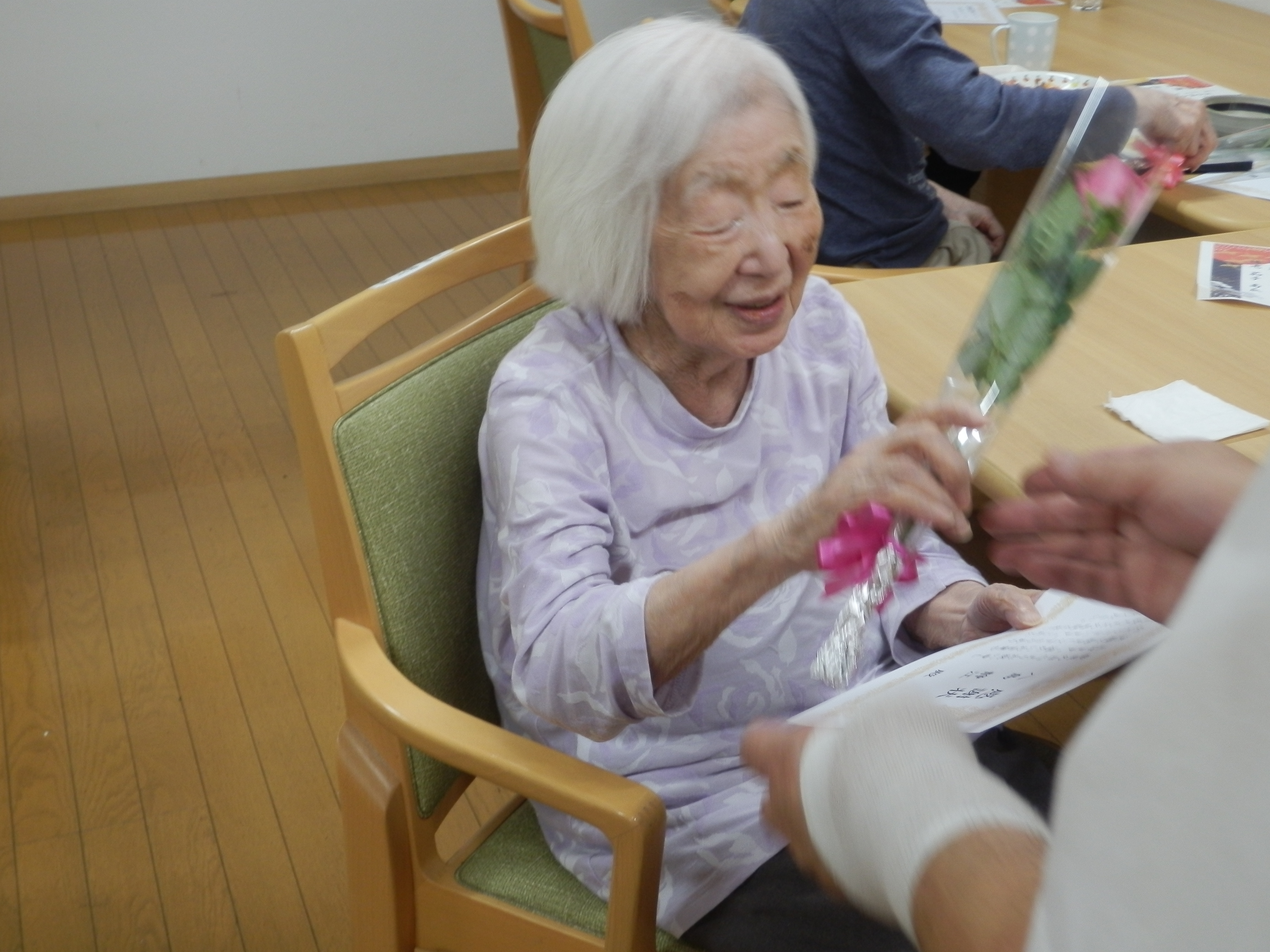 また 施設長からご入居者お一人お一人へ バラと「感謝状」を贈らせていただきました。