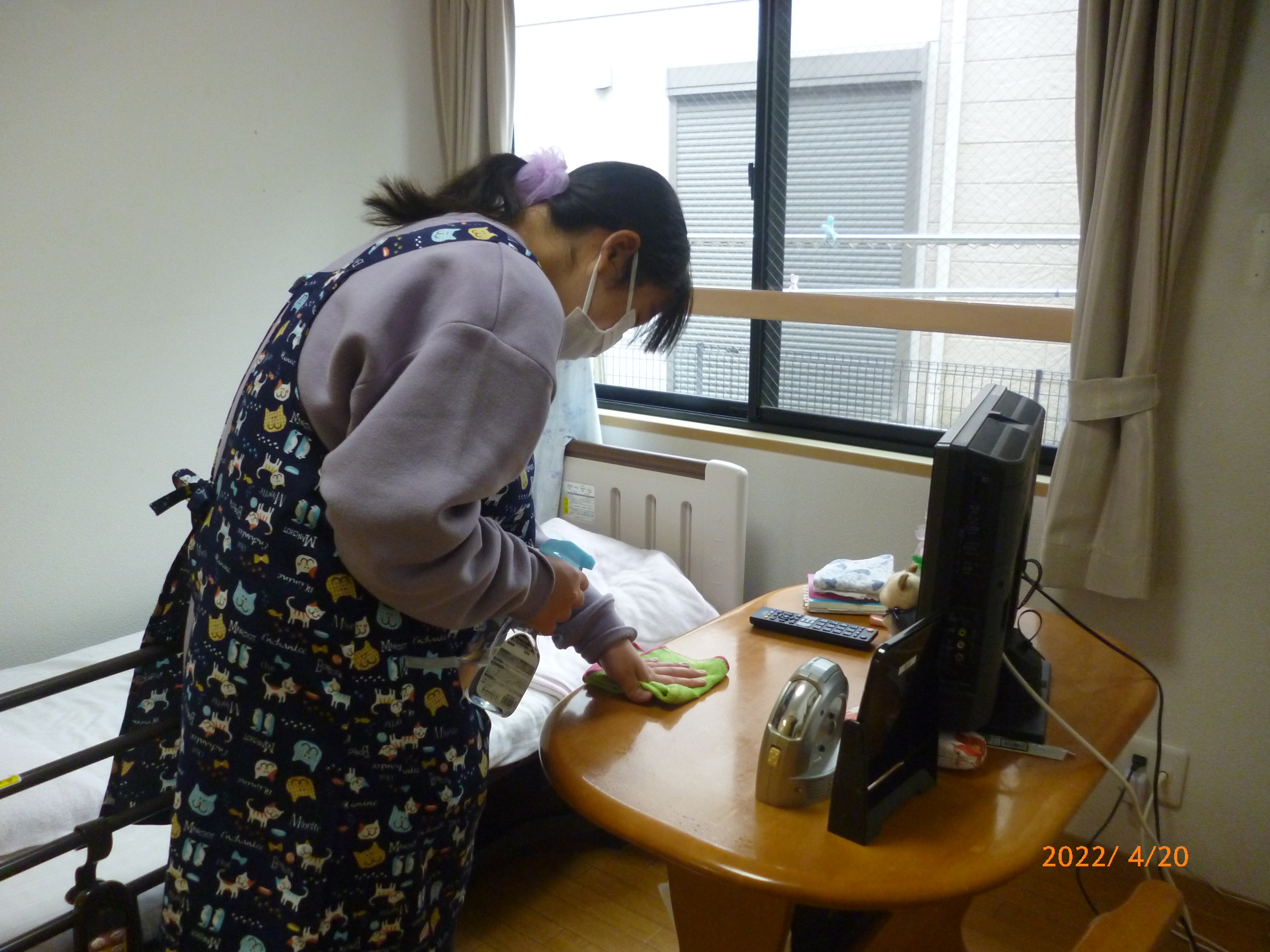 先日夕食が終わって職員より「居室のエアコンが1台つきません」との報告あり。確認してもどうやっても作動しません。すぐに大家さんに連絡し、次の日業者が確認し、調子が悪い他の居室も含め3台分手配してくれました。その翌日は朝からあいにくの天気で、昼からは雨も降りだしましたが、3台すべて取り付けてくれました。これで暑い日も寒い日も安心です。いつもありがとうございます。