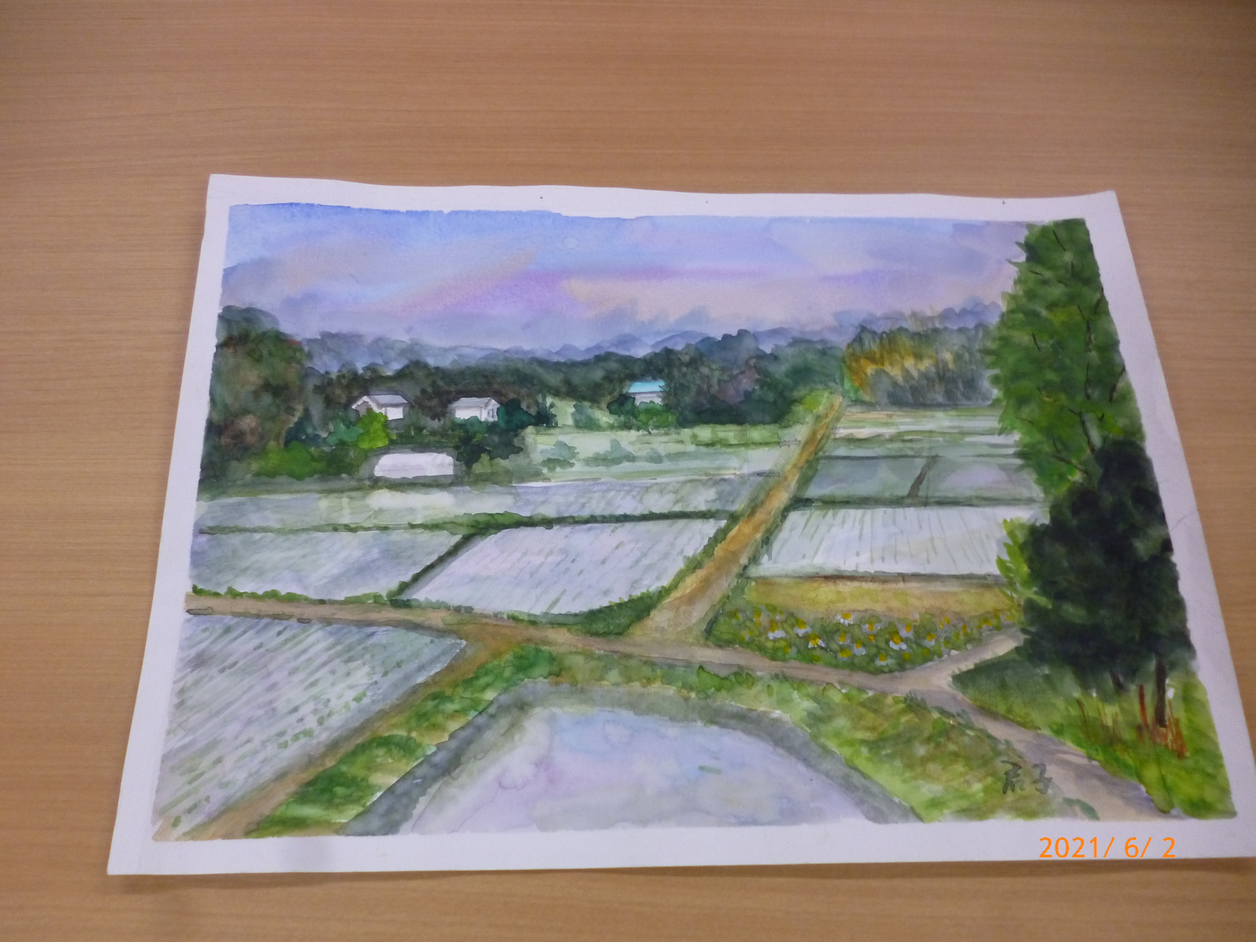 今日、以前までひよこの里で生活されていた入居者様のご家族(弟さん)が突然ひよこの里に来られ、「あんまり上手じゃなくて恥ずかしいけど、ひよこの里に飾ってもらおうと思って描いたから、よかったら飾ってよ」と3枚の絵を下さいました。入居者様の弟様だけに87歳と高齢ですが、とてもお元気な方で今でも小学校の登下校時に交通整理を行ったり、他にも清掃のアルバイトをしたりと、とても精力的に動かれている方です。3枚共にとても素晴らしい絵で入居者様にお見せすると「いいわねぇ」「上手ねぇ」ととても喜ばれていました。早速フロアーに展示致しました。本当にありがとうございました。