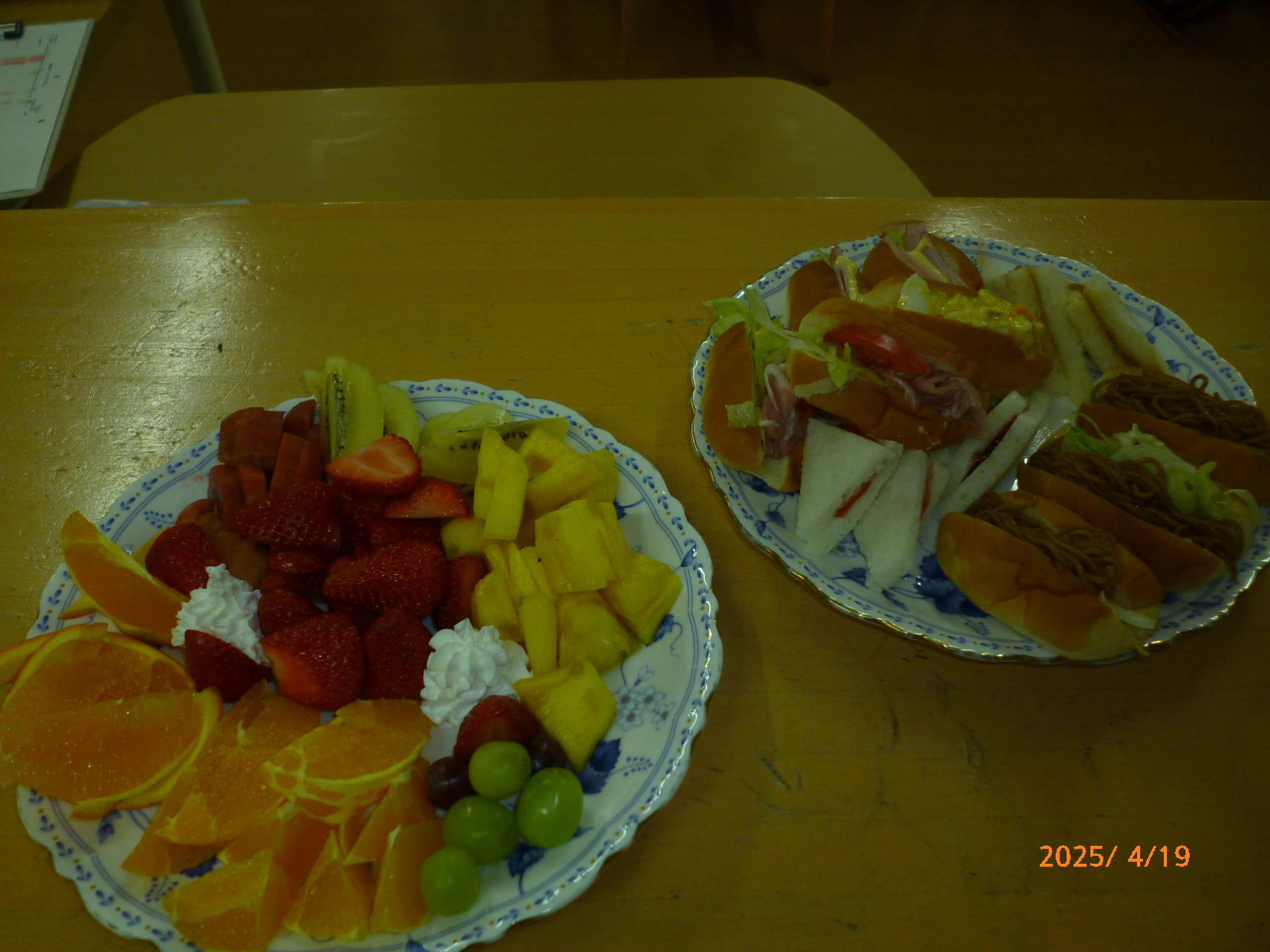 食しやすいフルーツをいっぱい準備して職員さんが手作りサンドを提供、フロアーがとても華やかになり、ご入居者様との会話も たくさん弾みました。