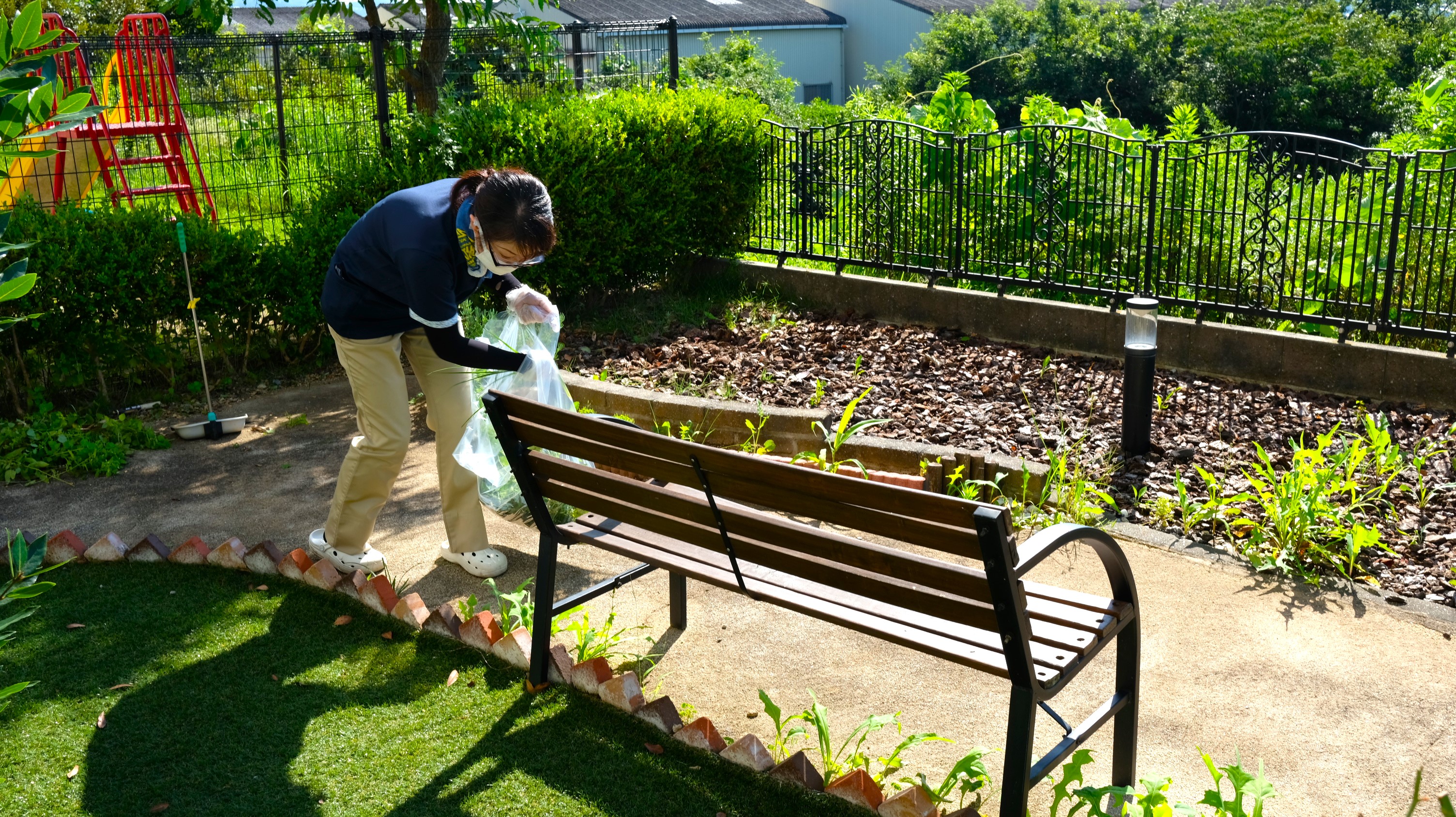 毎週月曜日の朝は施設周辺やガーデンの掃除を行っています。