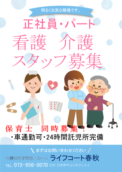 現在、ライフコート春秋では介護スタッフを募集しております。