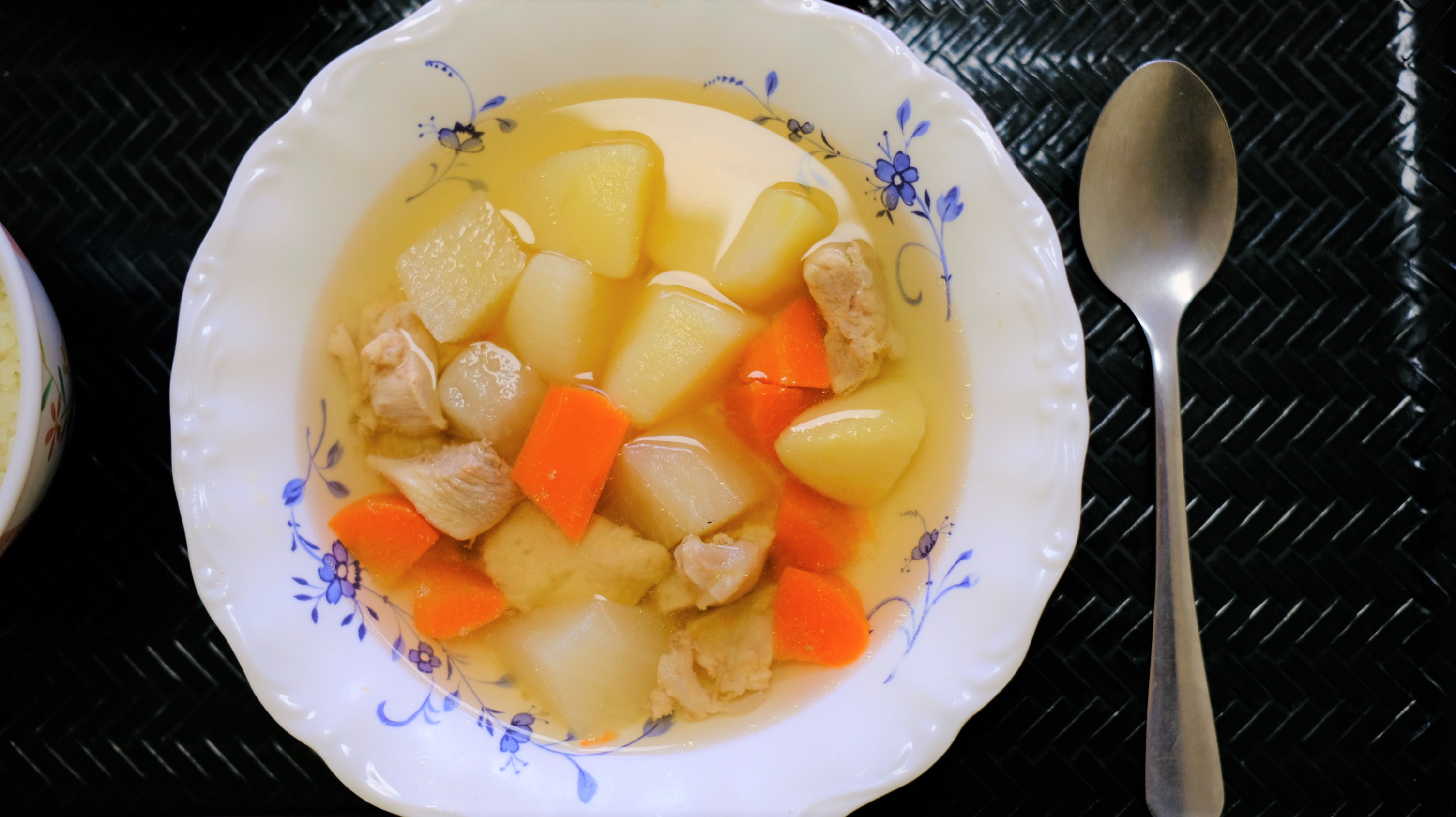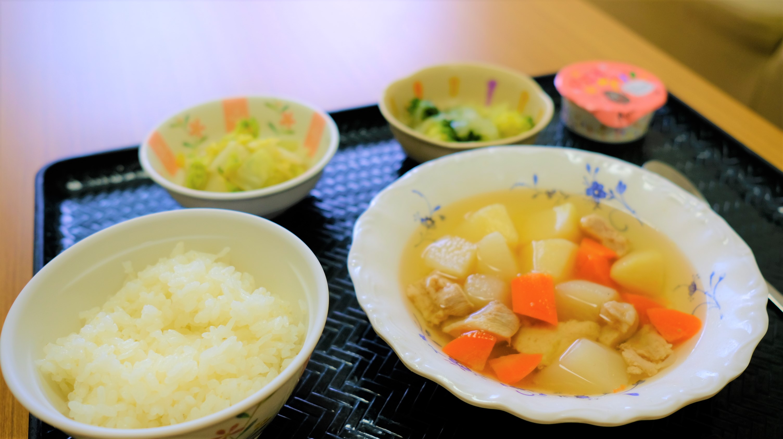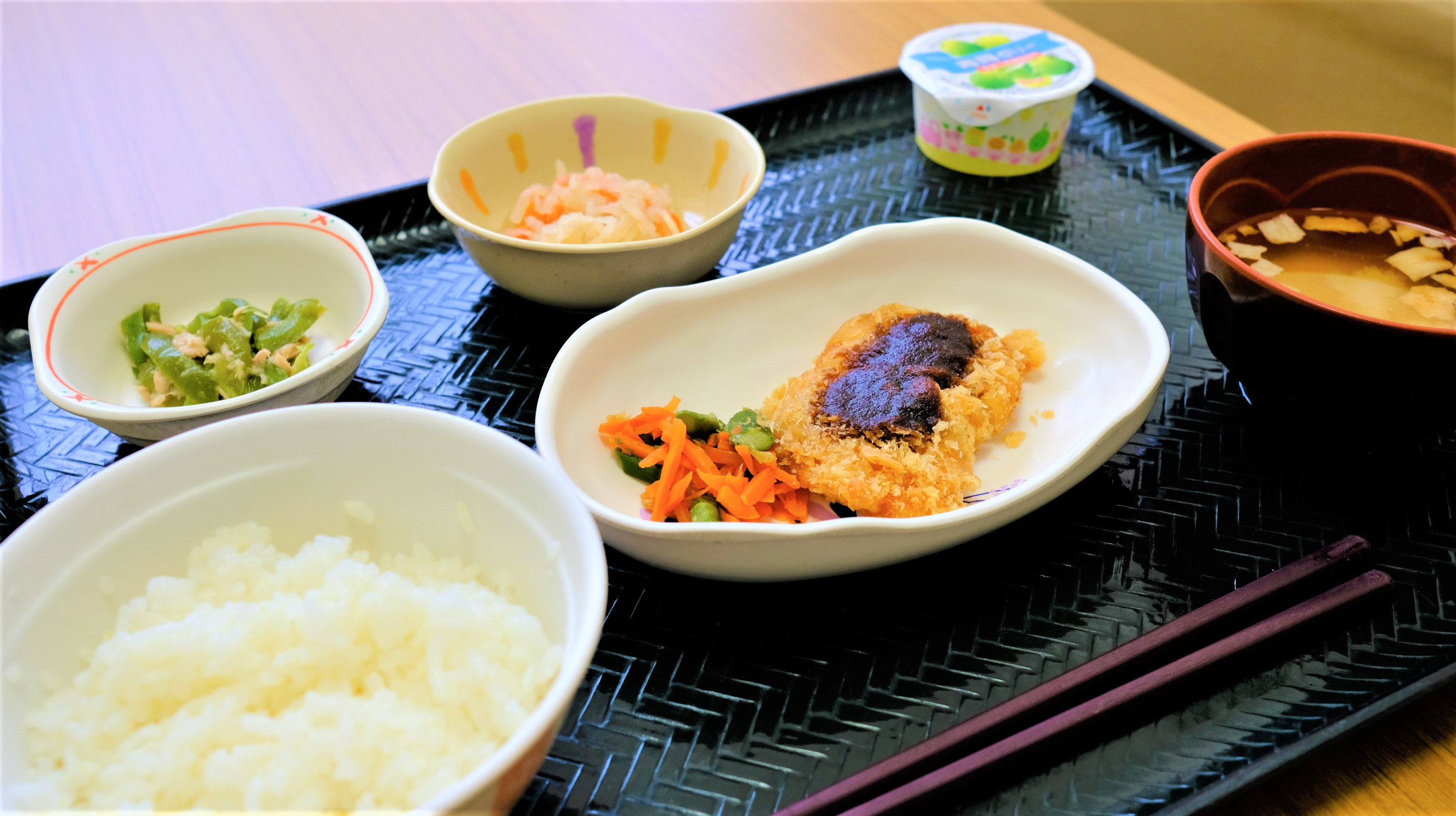 本日の昼食は選択メニュー、肉と魚でお好みの方を選んでいただきました。ご紹介するのは肉のメニューです。