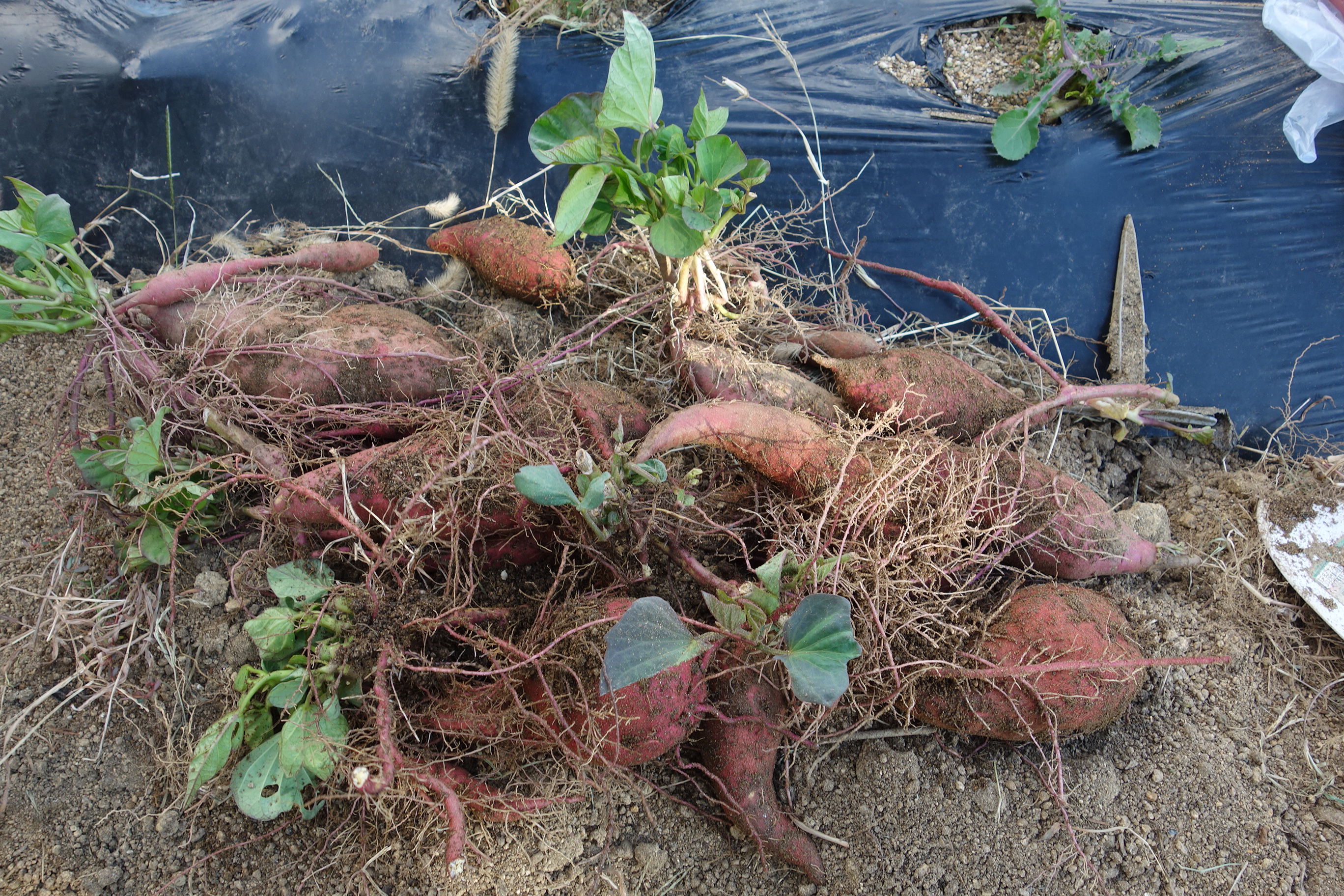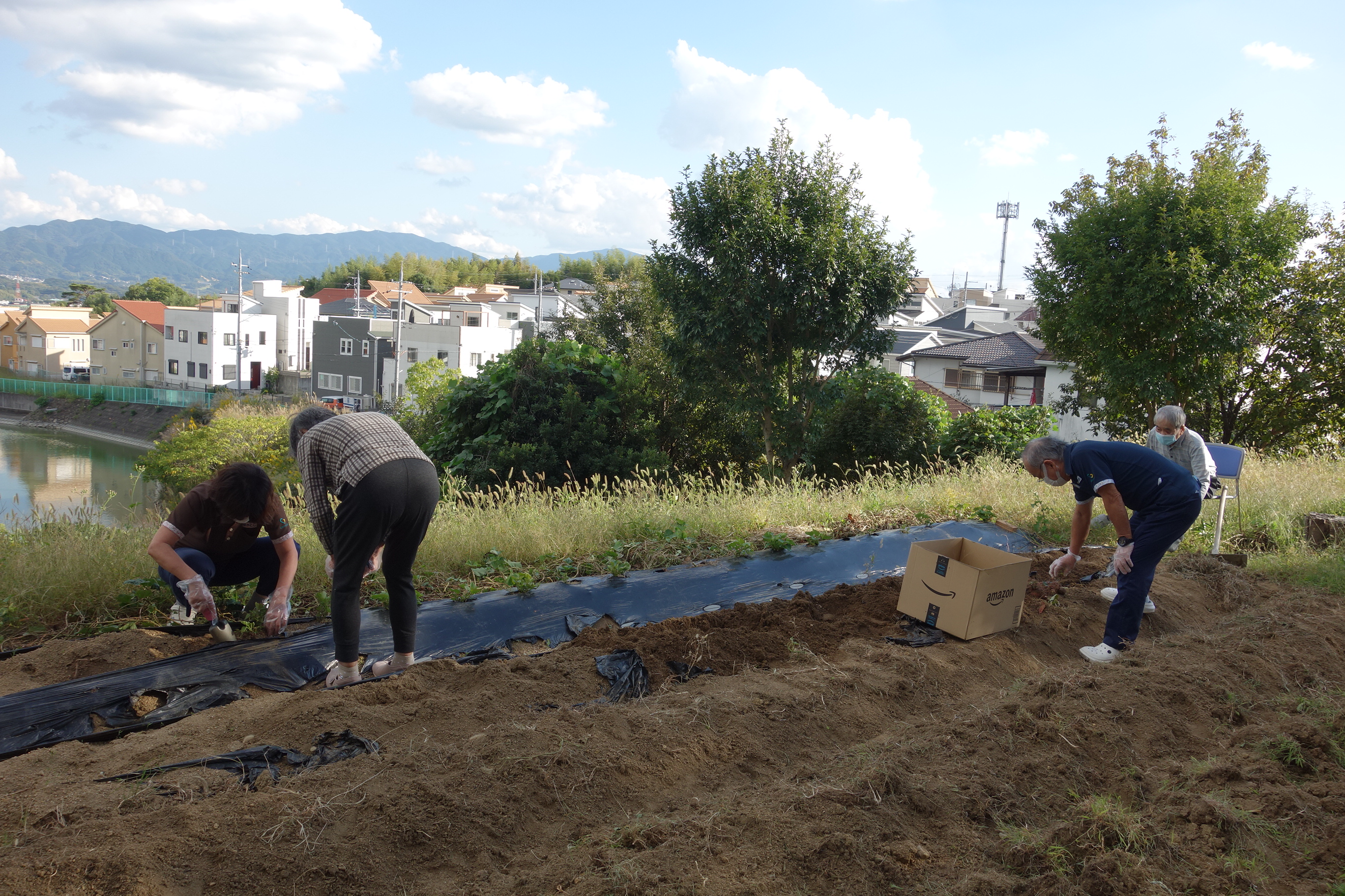 ちぎり絵・折り紙、黄色と水色が目をひく