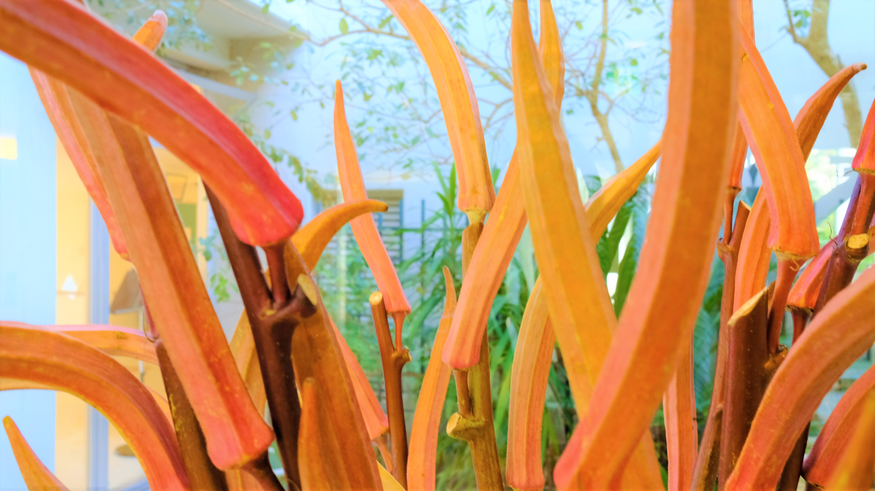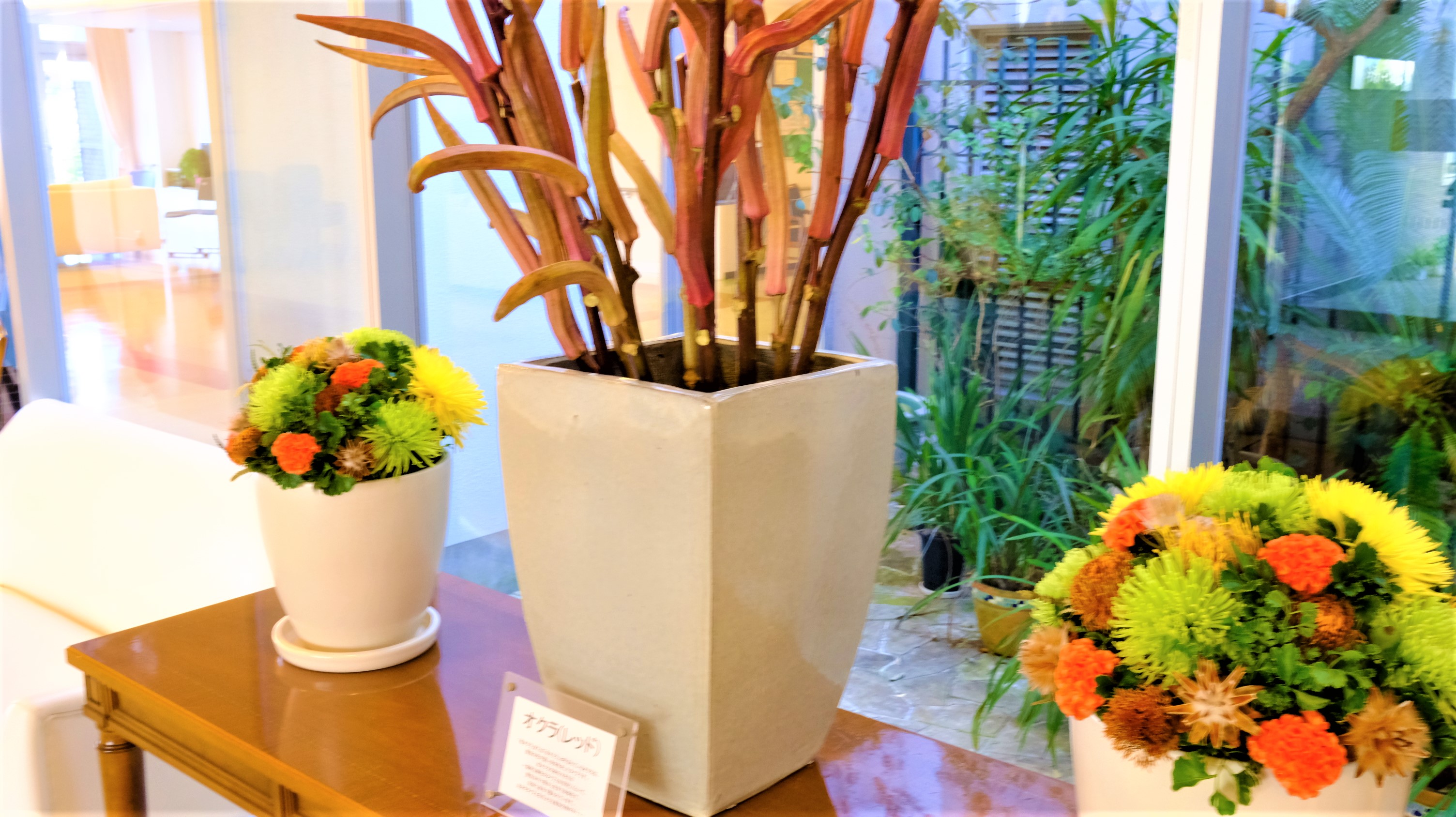 1Fロビーのお華は『オクラ(レッド)』が登場しています。