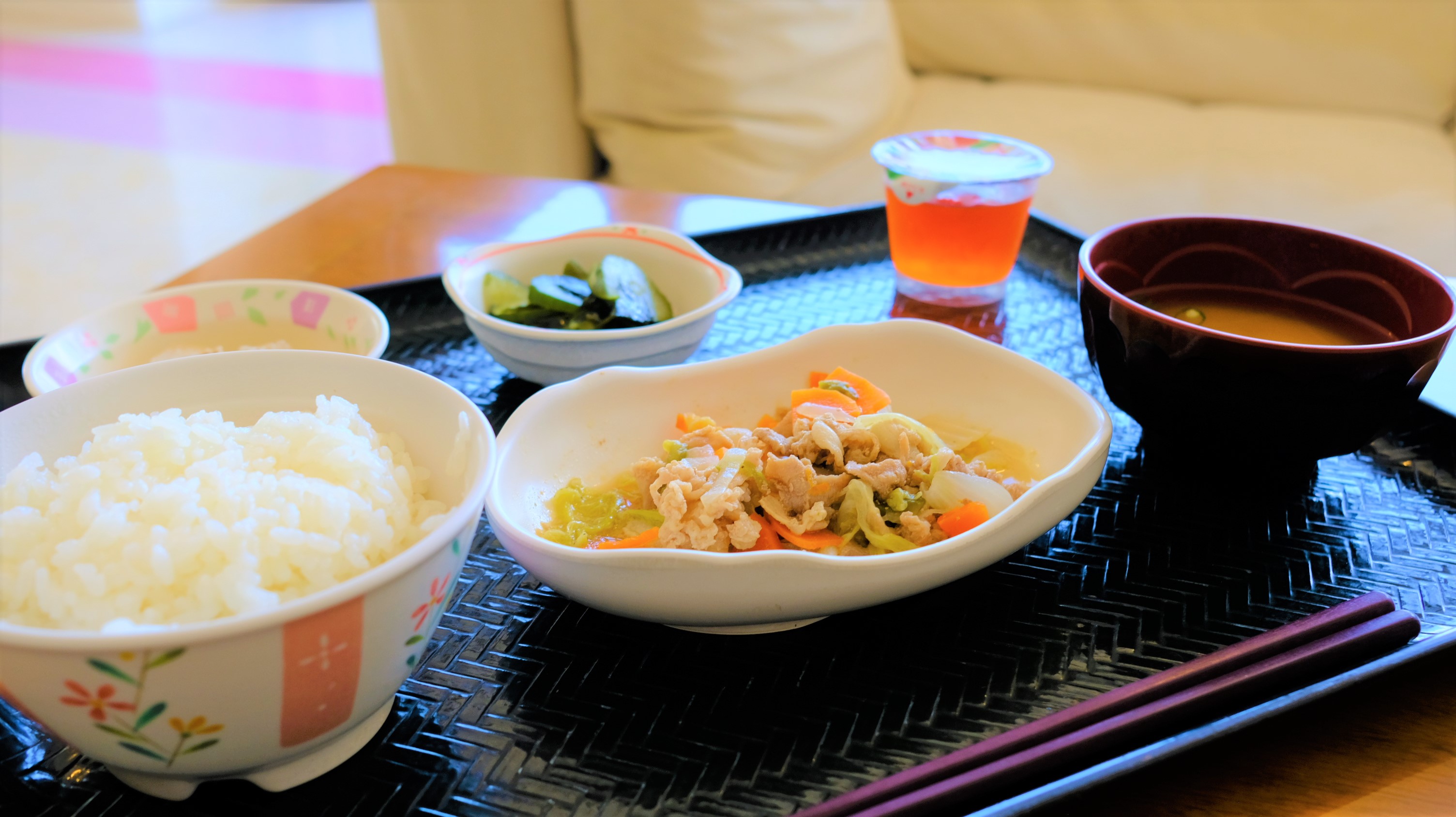 本日の昼食は選択メニュー、ご紹介するのはAのメニューです。Bのほうは「カレイのレモンバター蒸し焼き」でした。