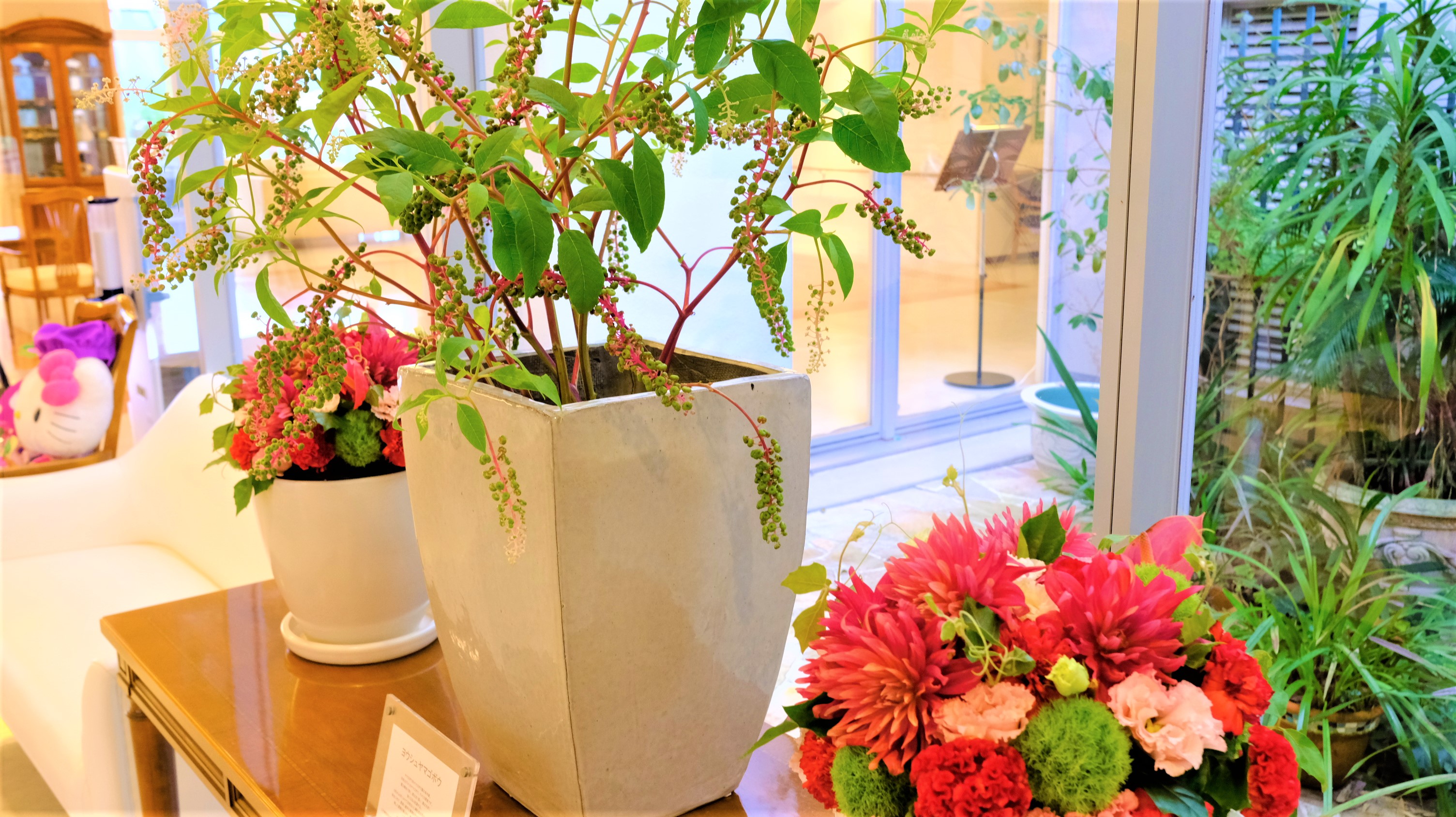 1Fロビー今週のお華は『ヨウシュヤマゴボウ』です。