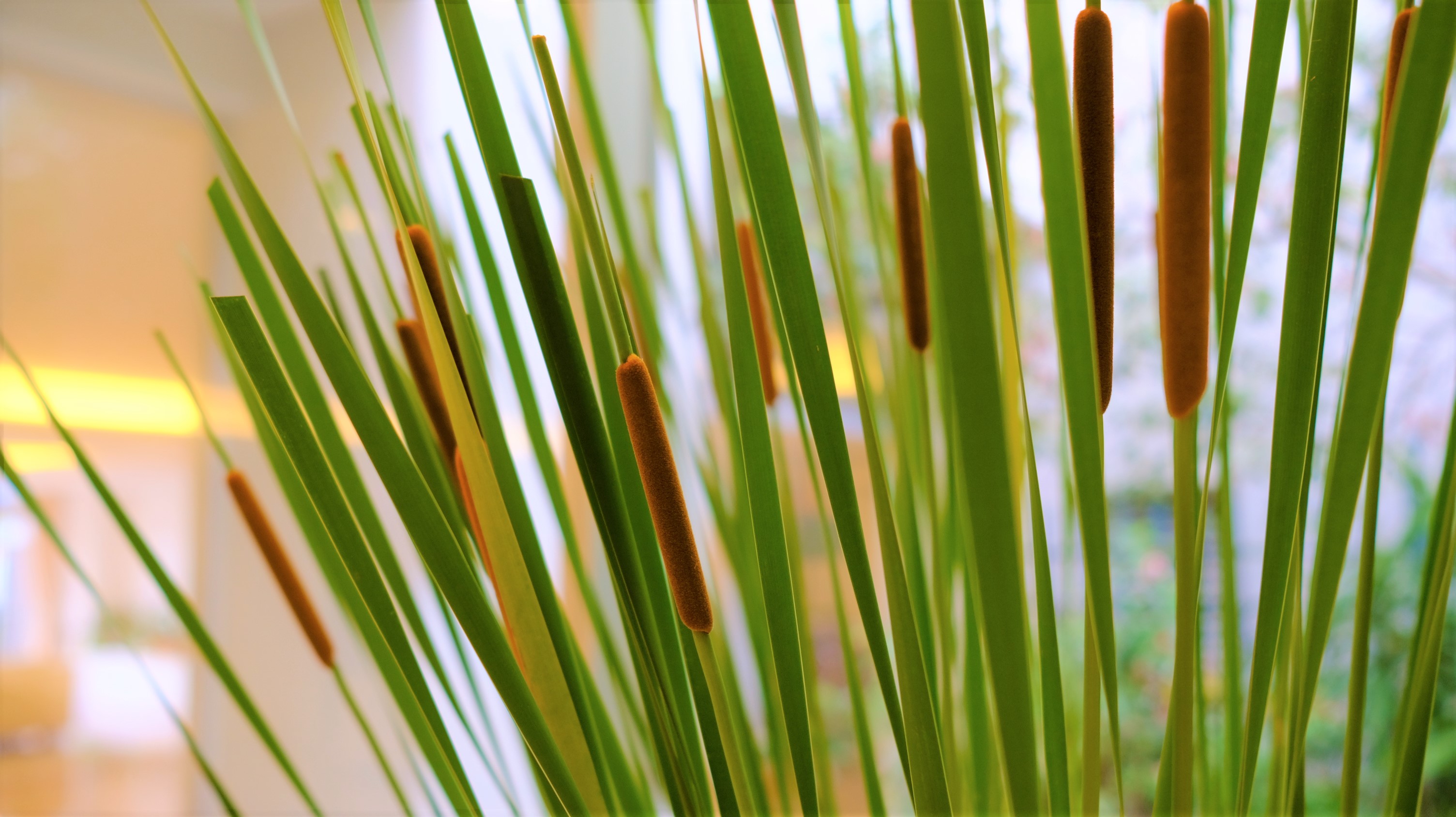 1Fロビー、今週のお華は『蒲(がま)』です。