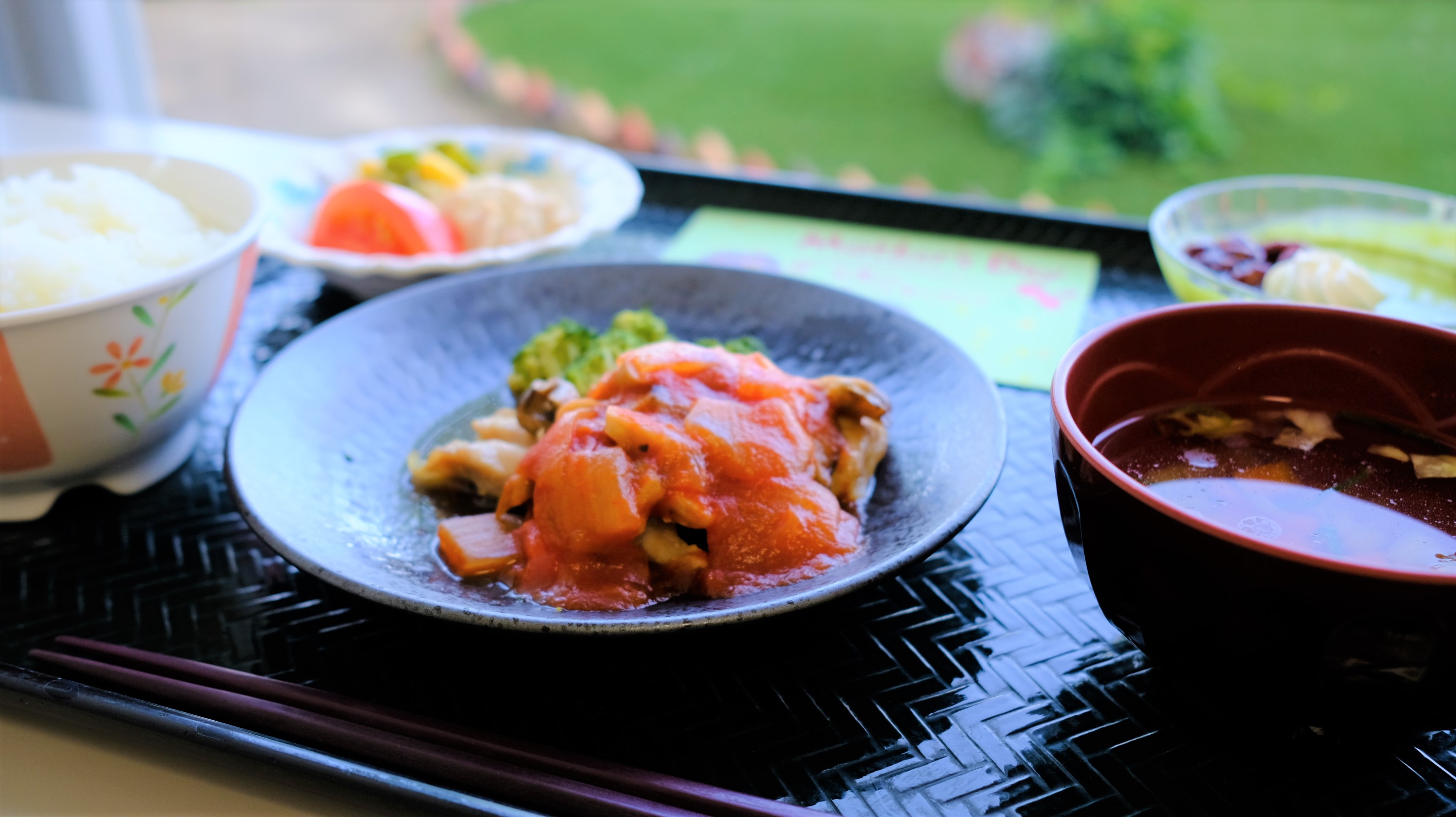 本日8日は母の日です。昼食もいつもと少し違うメニューです。