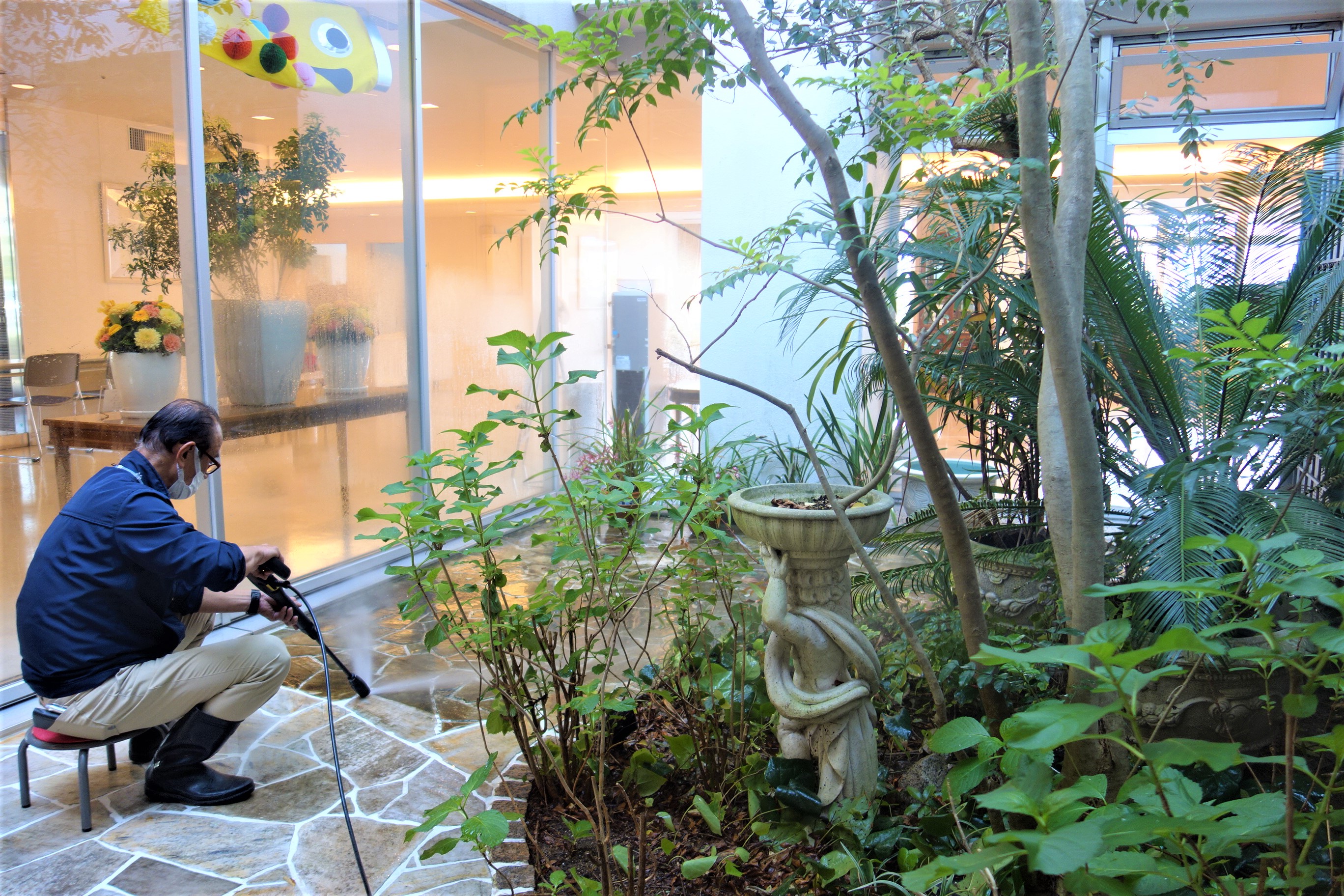 庭の掃除を、