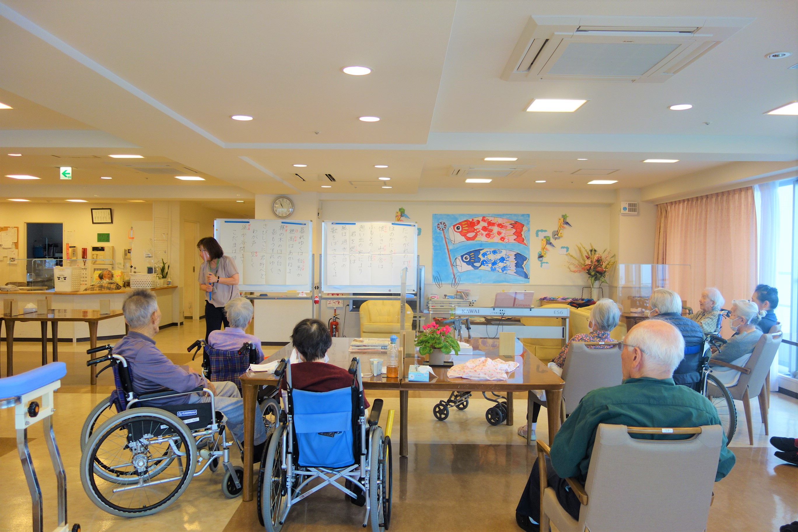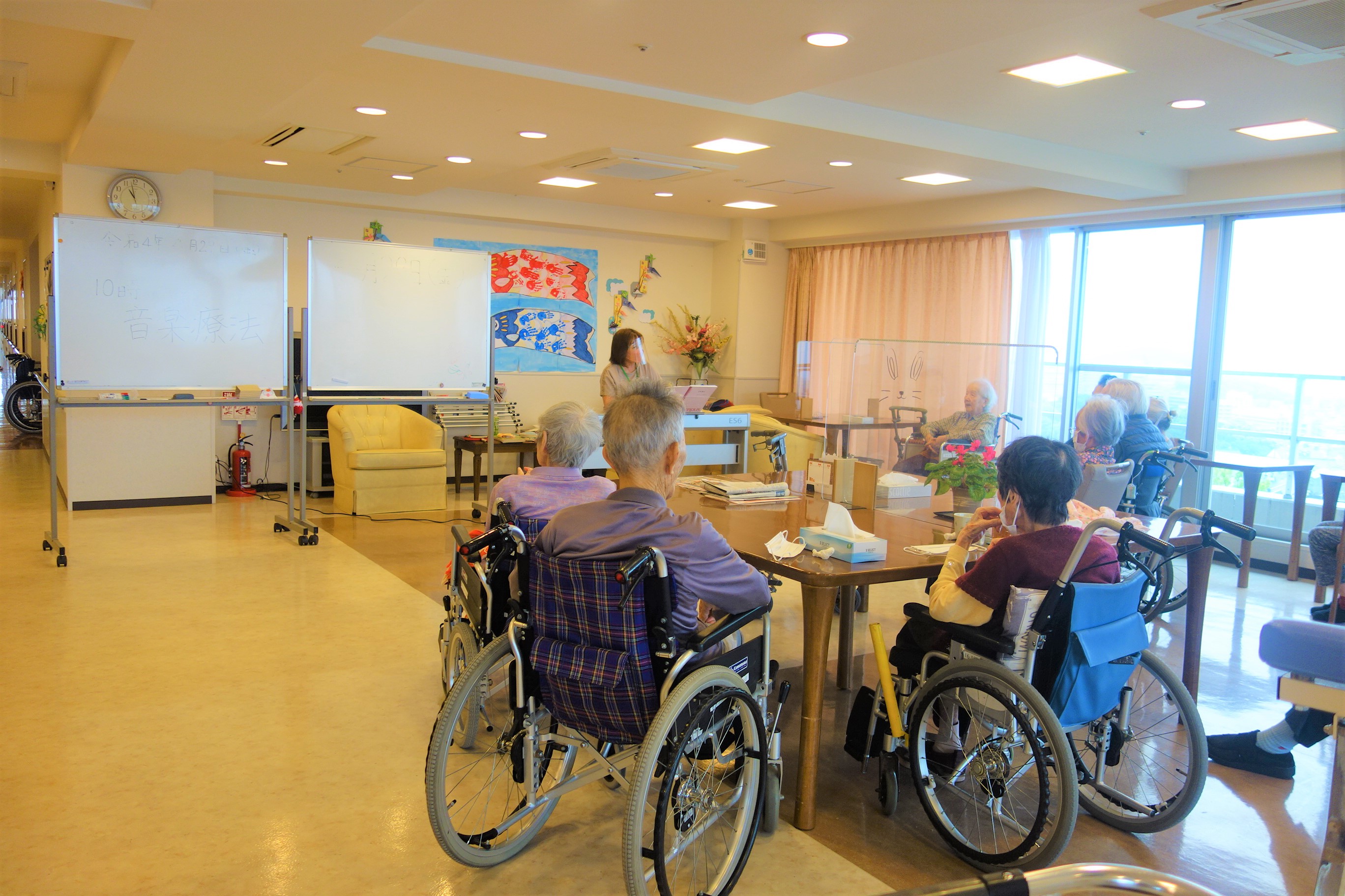 音楽療法、本日は5F入居者様の皆さんと5月の歌を歌いました。