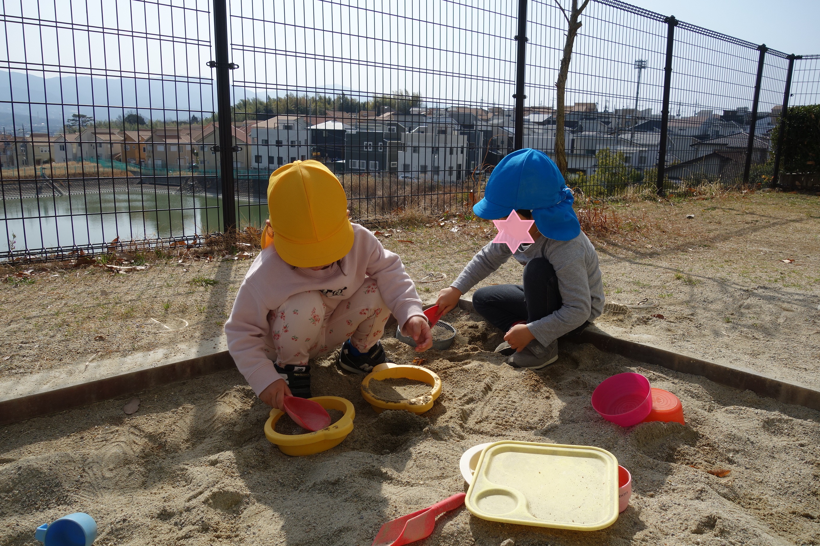 今日は良い天気で、園庭で砂遊びをしました(^^♪