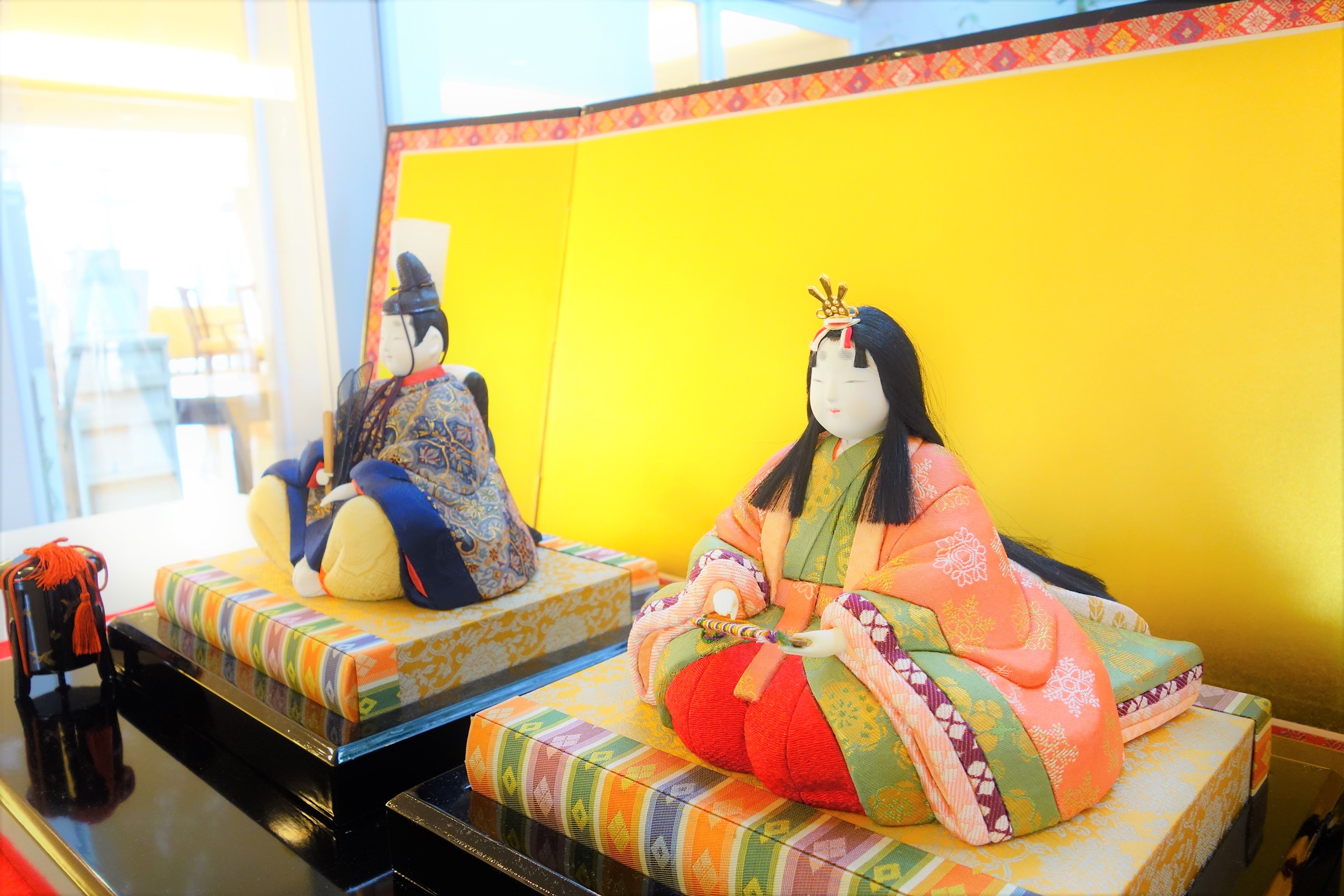 3月3日、桃の節句にむけて1Fロビーに雛人形を飾りました。