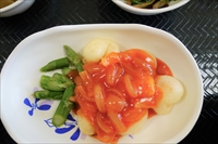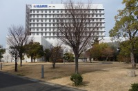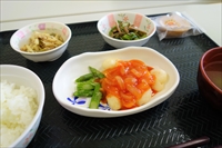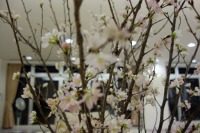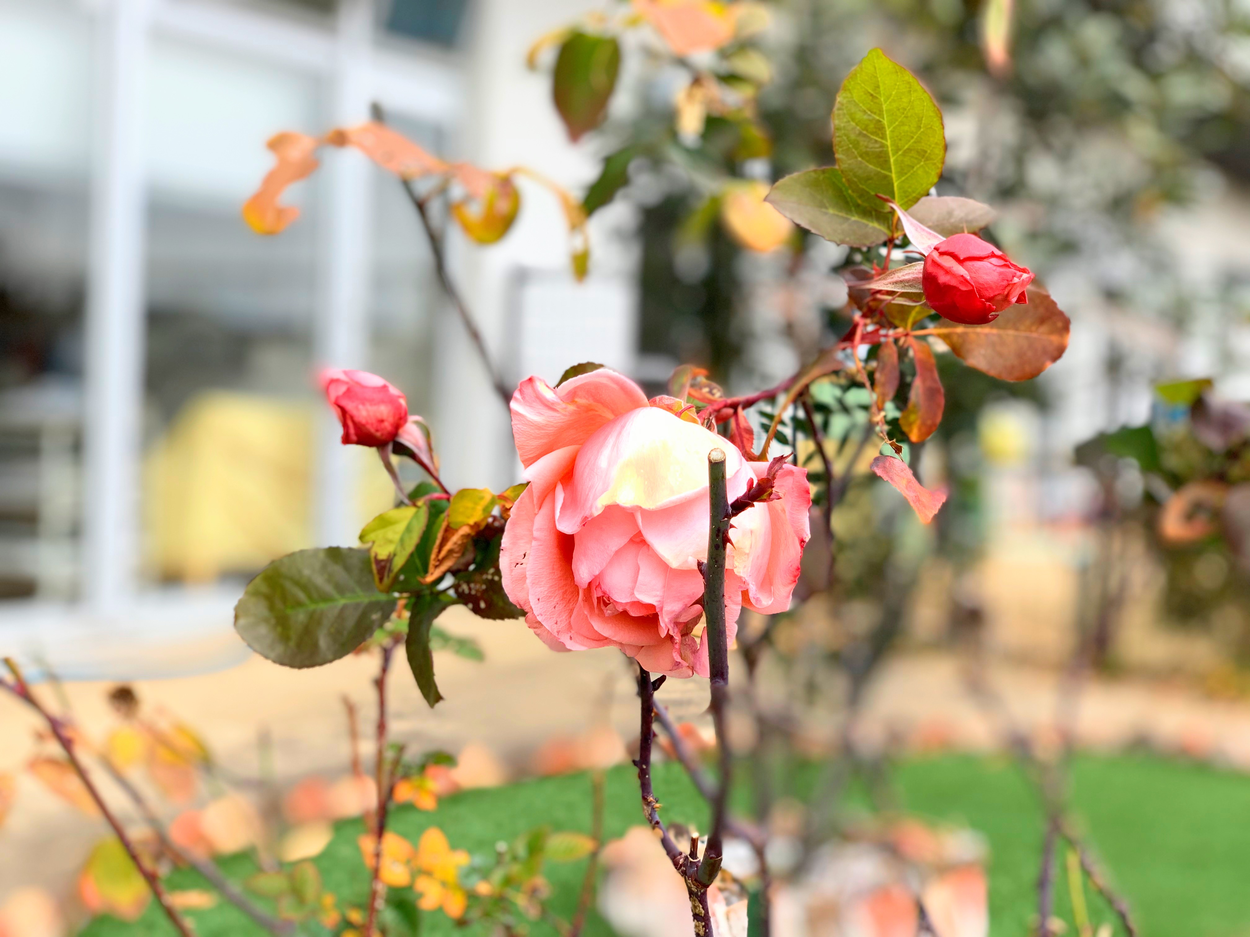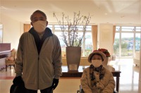 散歩帰りのご入居者様、ご夫婦で啓翁桜の前で「ハイ、チーズ」