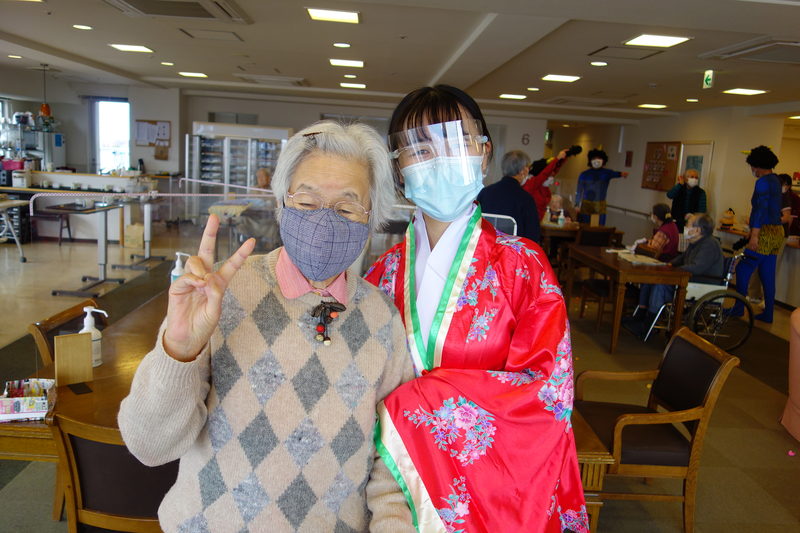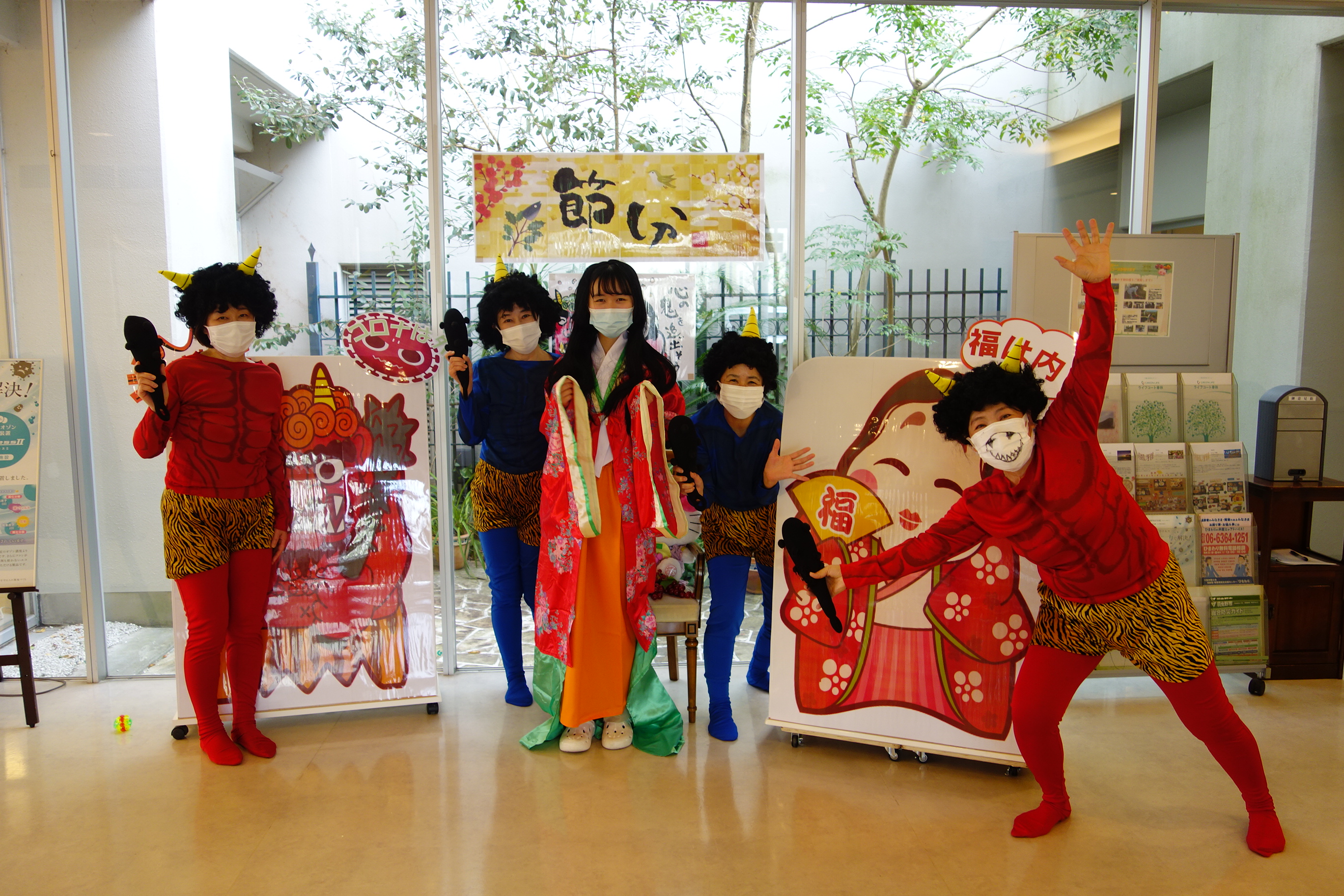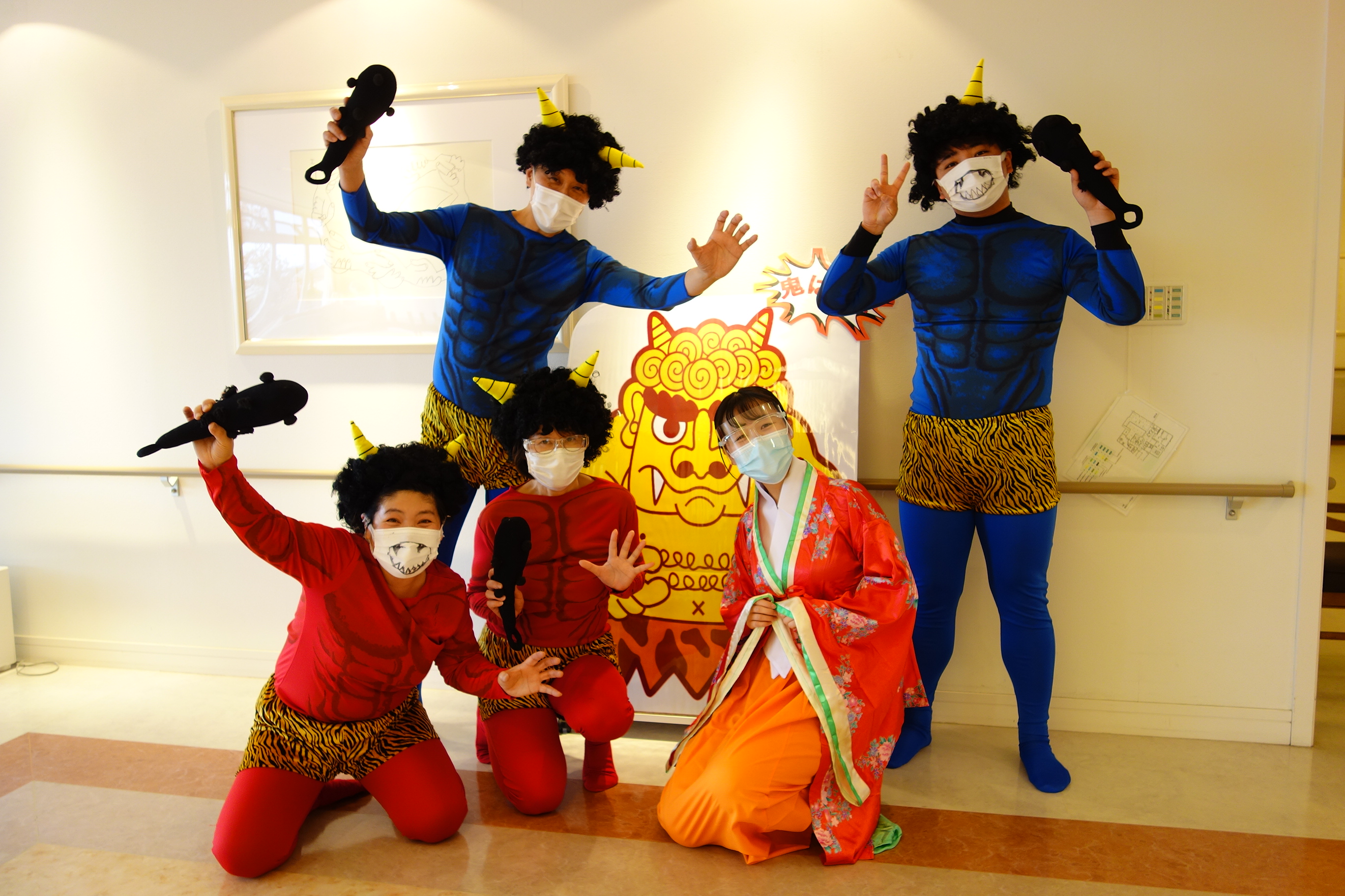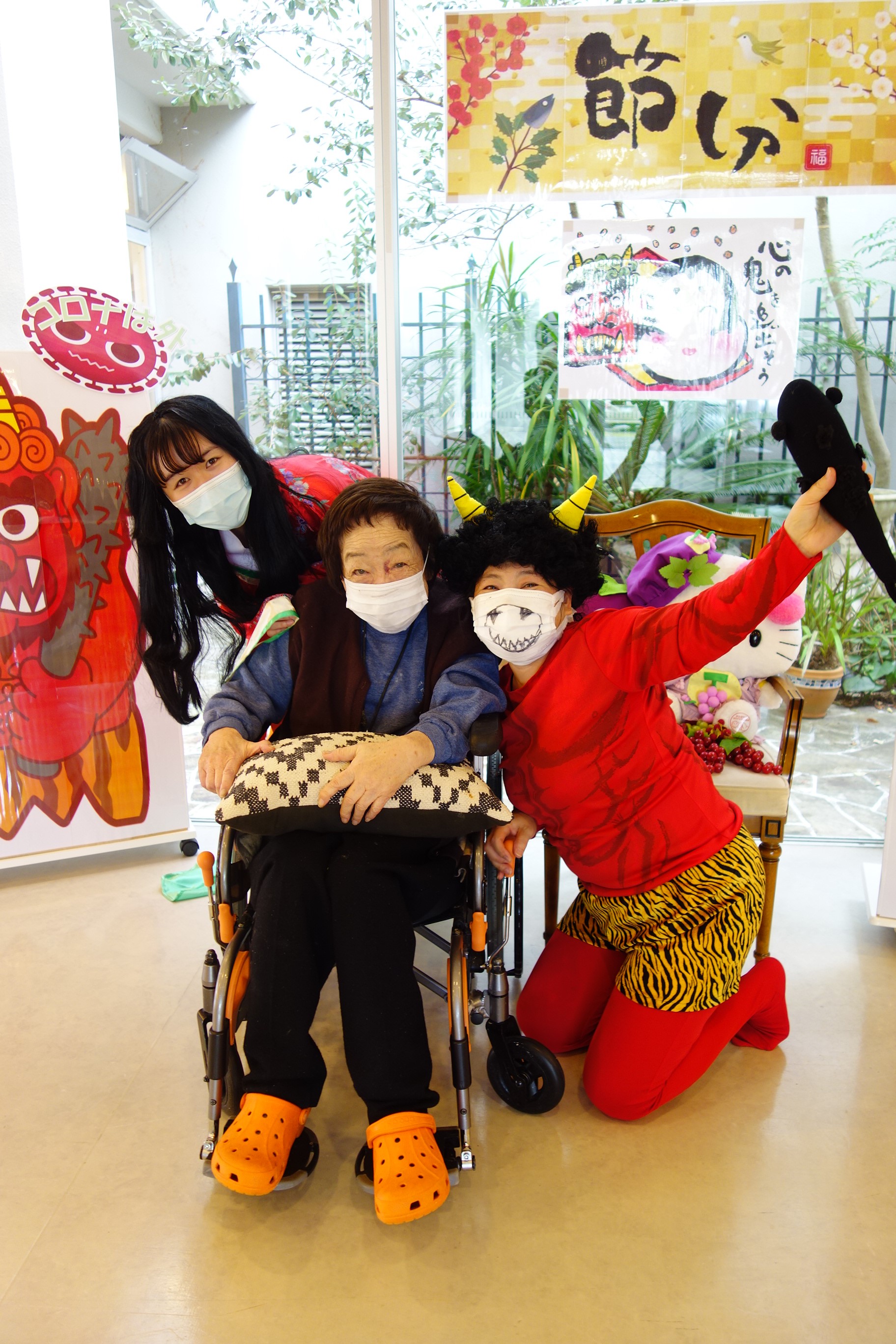 入居者様に鬼とコロナを追い払って頂きました。