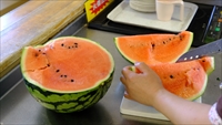 各フロアに一つづつ、特大のすいかを用意し楽しんで頂きました!