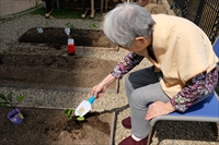 しっかり土に植えて水を撒いて、バンザーイ\(^o^)/