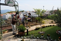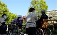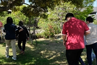 本年度入社のスタッフたちとリハビリガーデンを散歩、お花の水やりです。