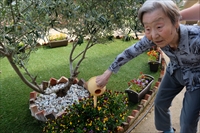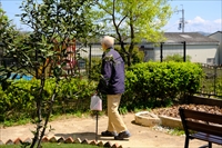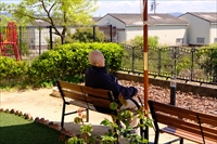 1F売店でお買い物の帰りに、リハビリガーデンを散歩されました。