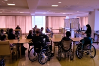 毎週、火曜日と金曜日に音楽の先生に来ていただいて各フロアーで音楽療法を行っております。