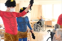 今年も無病息災で過ごせるよう、ボールを鬼たちにぶつけて祈願しました。